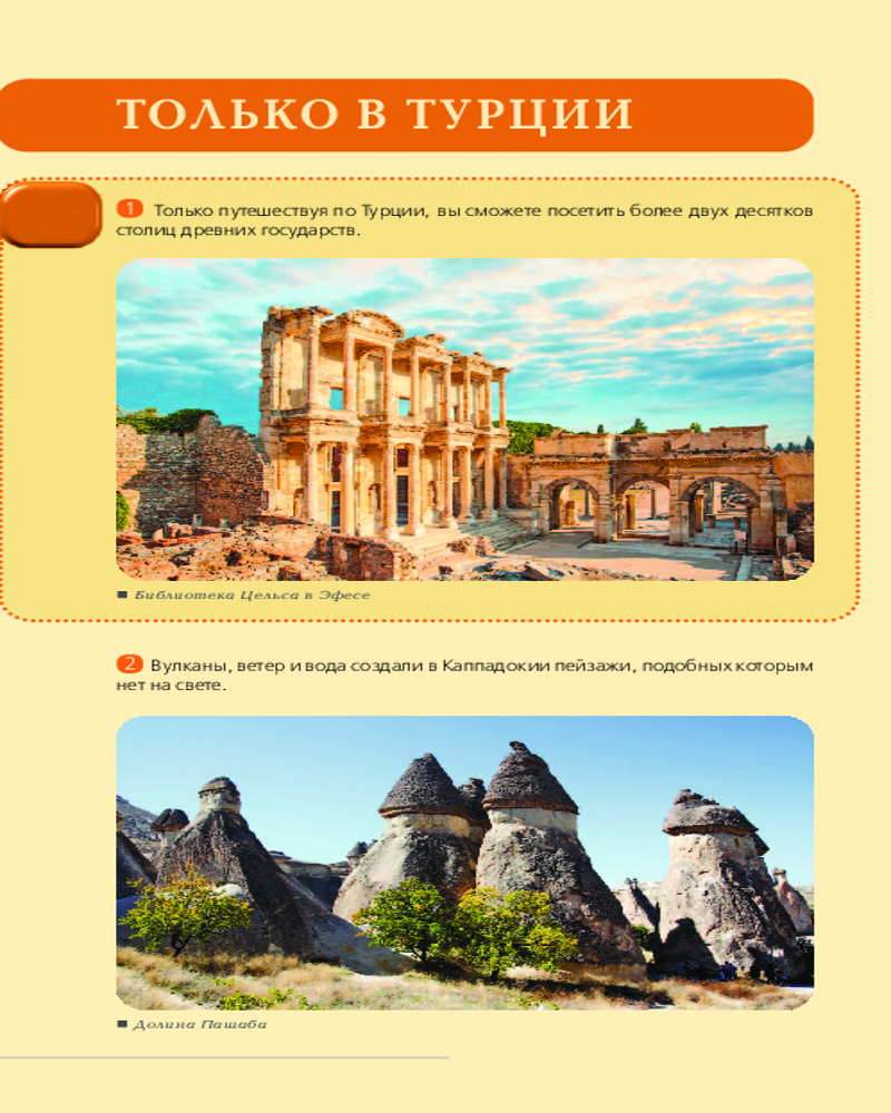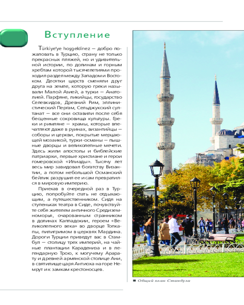 Вместе с нашим гидом вы изучите столицу четырех империй Стамбул и руины знаменитого города Трои, о которой писал Гомер, побываете в Эгейской Турции и в затерянных мирах Каппадокии, поднимитесь на гору Арарат и искупаетесь в белоснежных травертинах Памуккале, а также попробуете вкуснейшую местную кухню и изучите традиции местных жителей. Измир, Сиде, Алания, Бодрум, Фетхие, Анталья — все эти города и многие другие ждут вас в нашем путеводителе!
