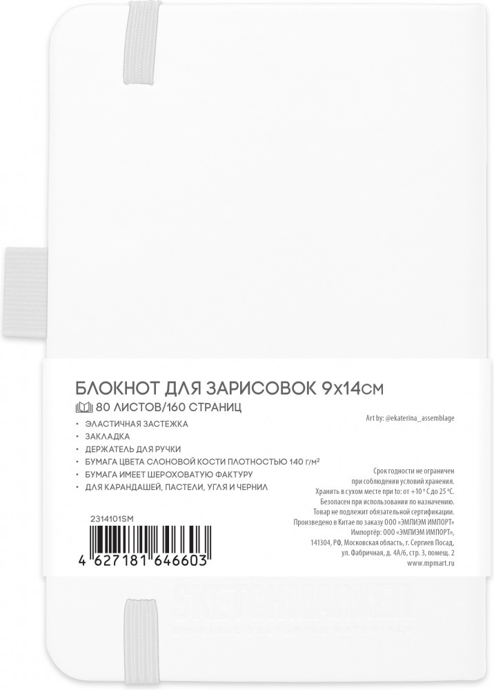 В твердой обложке скетчбука Sketchmarker 80 листов бумаги теплого белого оттенка, без линовки. Бумага гладкая, с едва ощутимой фактурой, плотностью 140 г/м, произведена из 100% целлюлозы и отлично выдерживает исправления.