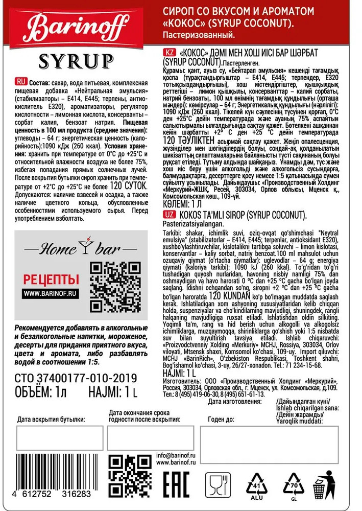 Круто, что появилась возможность заказывать сиропы этой марки. Нам нравится гренадин именно от Баринофф, т.к. он при смешивании с водой получается вкусным и немного сладковатым. От остальных производителей вкус не такой сладкий. Добавляем и в коктейли, и пьем с водой/газировкой, нас все устраивает, берем не первый раз
