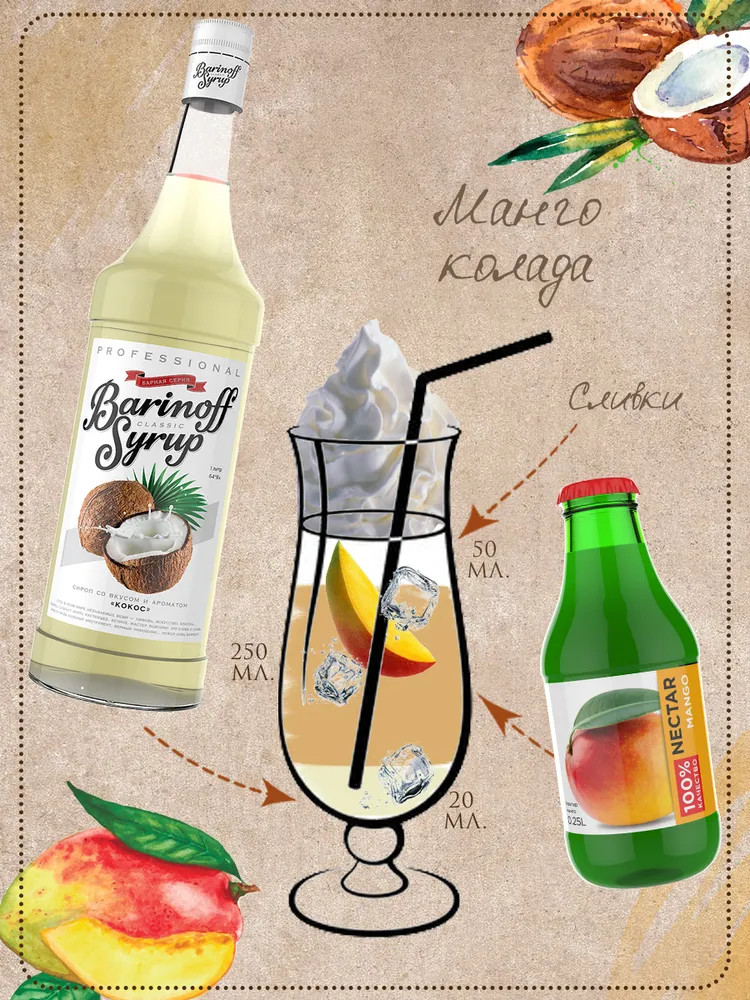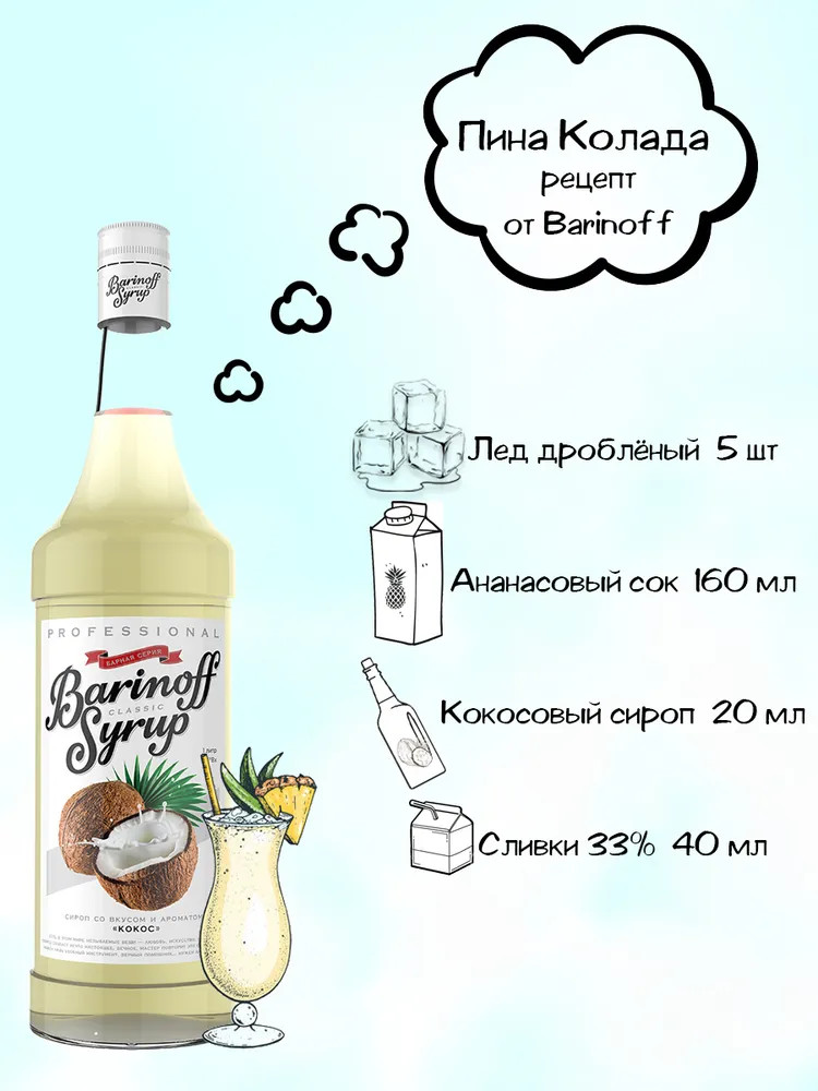Кокосовый сироп мне по вкусу в коктейле не понравился совсем. Больше не куплю.