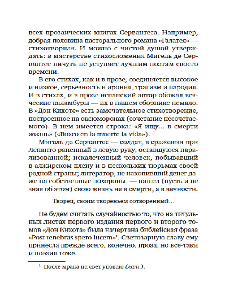 💳 Оплатить за товар можно при получении 🇰🇿 Есть бесплатная доставка по Казахстану от 1 дня 🎁 Копите бонусы с каждой покупки Серия: Азбука-поэзия В 2002 году согласно опросу, проведенному среди писателей Нобелевским институтом, «Дон Кихот» был признан лучшим романом за всю историю мировой литературы. Великий монумент, воздвигнутый Сервантесом, неизбежно отбрасывает тень на остальное творчество великого испанца, которое довольно обширно: романы, новеллы, пьесы... И конечно — стихи. Поэзия занимает значительное место в творчестве Сервантеса: во всех его произведениях содержится множество стихотворений и песен. И можно с чистой душой утверждать: в мастерстве стихосложения Сервантес ничуть не уступает лучшим поэтам своего времени. В его стихах, как и в прозе, соединяется высокое и низкое, серьезность и ирония, трагизм и пародия. Настоящее издание — первый в России сборник стихотворных произведений Сервантеса. В него вошли стихотворения из известных романов и новелл (из «Дон Кихота», «Галатеи», «Назидательных новелл»), отрывки из поэм, песни из пьес и интермедий в замечательных переводах, часть которых сделана специально для настоящего сборника. |