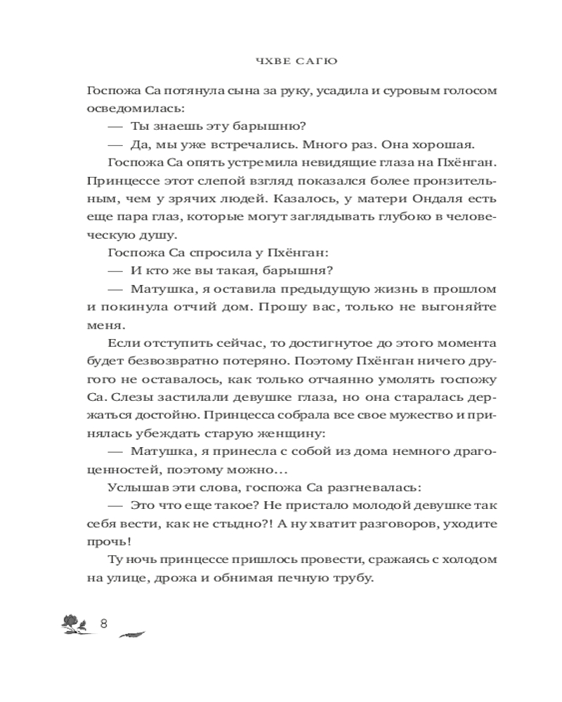 💳 Оплатить за товар можно при получении 🇰🇿 Есть бесплатная доставка по Казахстану от 1 дня 🎁 Копите бонусы с каждой покупки Серия: Red Violet. Магия Азии Принцесса Пхёнган наотрез отказывается выходить замуж за Го Гона и покидает замок. Она находит приют в уединенном горном домике Ондаля и его слепой матушки, госпожи Са. Вдалеке от роскоши дворца Пхёнган учится жить заново, как обыкновенная девушка: помогает по дому, готовит и узнает много нового о мире. Но как бы ни увлекала ее простая жизнь, принцесса точно знает: Го Вонпё не остановится, пока не приберет к рукам все деньги и власть в стране. Поэтому мудрая Пхёнган придумывает план свержения семейства Го и несколько лет шаг за шагом старается привести его в исполнение. Однако враг хитер и коварен, как змей, и не собирается проигрывать юной принцессе. Кто же выйдет победителем из этого противостояния? |