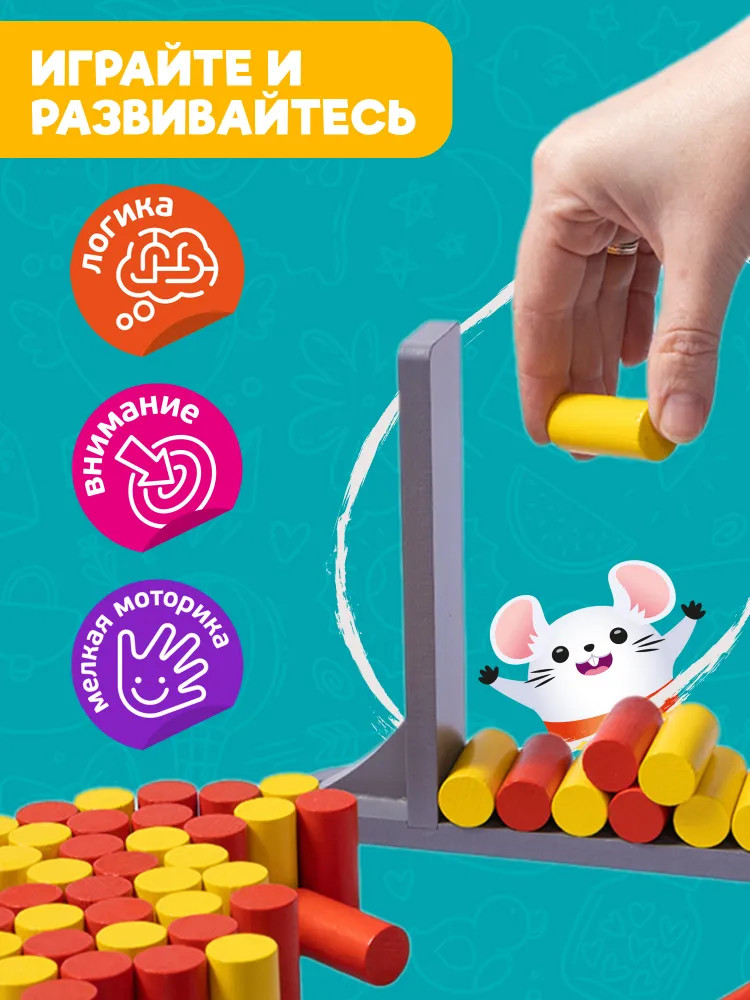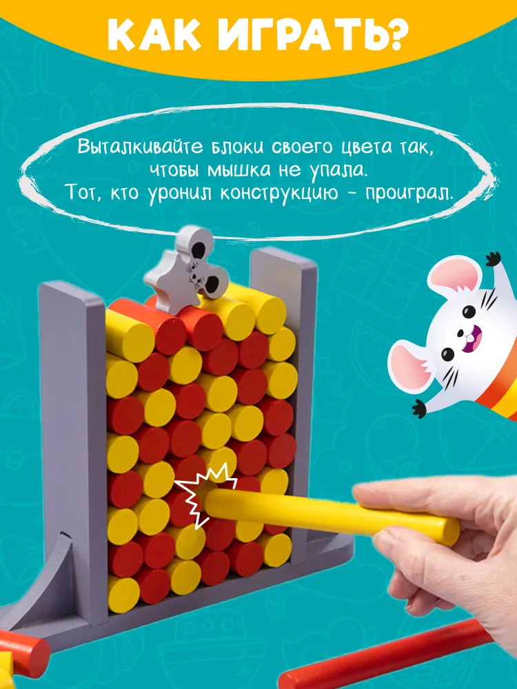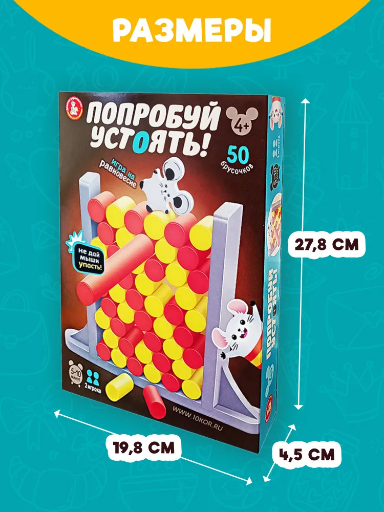 💳 Оплатить за товар можно при получении 🇰🇿 Есть бесплатная доставка по Казахстану от 1 дня 🎁 Копите бонусы с каждой покупки Развивающая настольная игра на ловкость «Попробуй устоять!» будет интересна как малышам, так и игрокам постарше. Упадет ли мышка, зависит только от ловкости рук игроков! Не дайте мышке упасть! |
