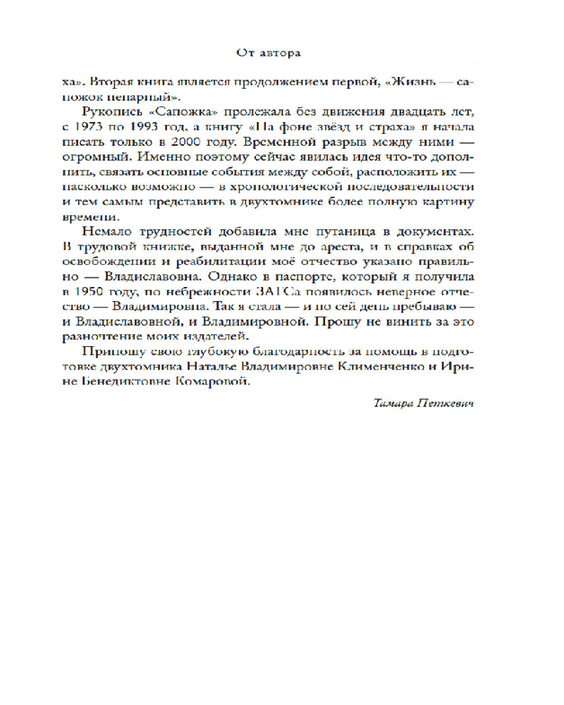 💳 Оплатить за товар можно при получении 🇰🇿 Есть бесплатная доставка по Казахстану от 1 дня 🎁 Копите бонусы с каждой покупки Серия: Персона Воспоминания Тамары Петкевич, наряду с произведениями Варлама Шаламова, Евфросинии Керсновской, Евгении Гинзбург и многих других, занимают прочное место в ряду произведений, которые запечатлели «единый человеческий слив помоев, добра, жестокости, зверств и беззащитности» и навсегда обозначили координаты «лагерной» темы на карте русской литературы ХХ века. Юной, хрупкой, нежной, потрясающе красивой женщине в полной мере довелось хлебнуть из чаши страданий, выпавших на долю безвинных жертв политических репрессий; она испытала и непосильный труд, и унижения, и голод, и холод, которые превращают заключённых в затравленное животное. Вместе с тем лагерные годы стали для автора не только наукой выживания в нечеловеческих условиях. Судьба Тамары Петкевич под стать захватывающему роману, в котором соединились любовь, предательство, ревность, разлука, дружба, встречи с удивительными людьми, радость материнства и боль утраты — всё то, что определяет волнующую полноту человеческой жизни вопреки уродству страшных законов лагеря и своеволию его богов и божков. |