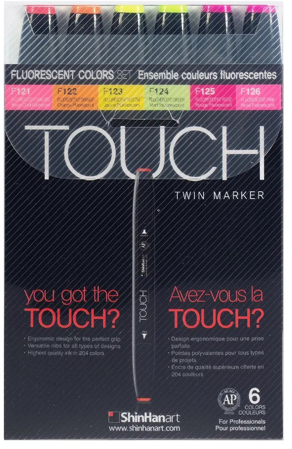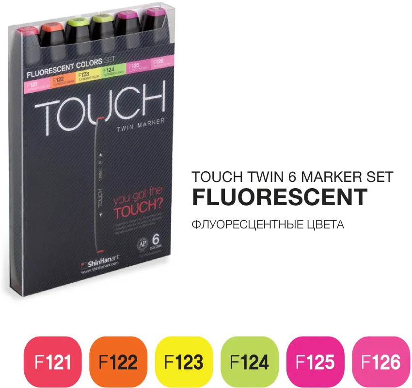 ShinHan Art Набор маркеровВ данный момент этот товар отсутствует в продаже. Возможно, у нас найдется аналогичный или похожий товар здесь. Серия: Twin Набор маркеров Touch Twin 6 штук (флуоресцентные цвета) в пластиковой упаковке. Профессиональные художественные маркеры Touch от корейского производителя ShinHanart на рынке с 1983 года. Разработаны для аниматоров, иллюстраторов, художников, архитекторов и дизайнеров, идеальный инструмент для скетчинга. Плавная и равномерная подача чернил и 2 вида наконечников («пуля» + «долото») обеспечивают точность и комфорт при работе. 204 цвета в серии, цвета можно накладывать друг на друга и смешивать для получения новых оттенков и плавных переходов. Маркеры содержат чернила на спиртовой основе, которые почти не имеют запаха и не размывают тонер принтера, ими можно рисовать на распечатанных материалах. Маркерами можно работать по бумаге, стеклу, камню, бетону, неэмалированной керамике, фотографиям, пластику и ткани. Эргономичный четырехгранный корпус, благодаря которому маркеры не скатываются со стола. Колпачок маркера надёжно защищает наконечник маркера от механических повреждений и высыхания. Заправки и наконечники Touch значительно увеличат срок службы ваших любимых маркеров. |
