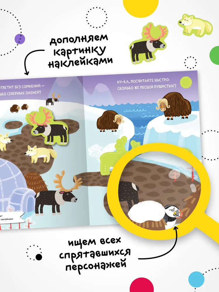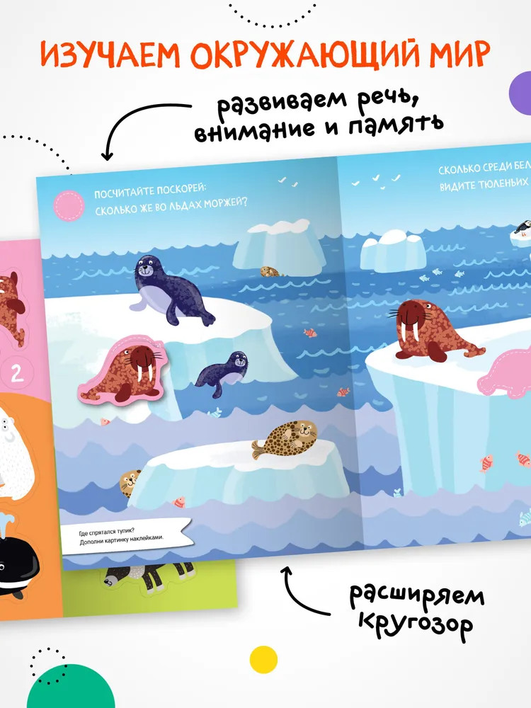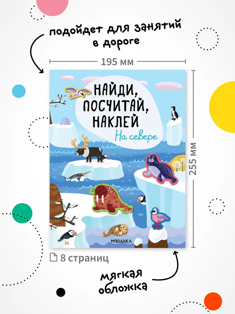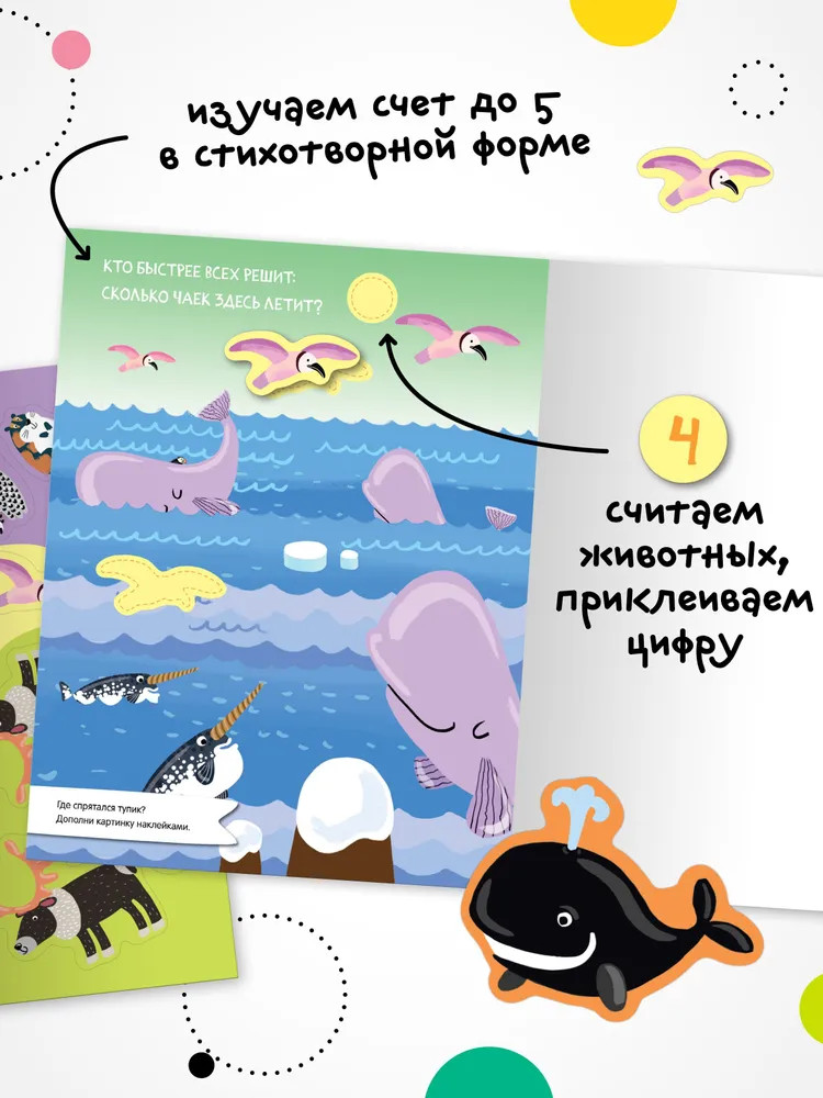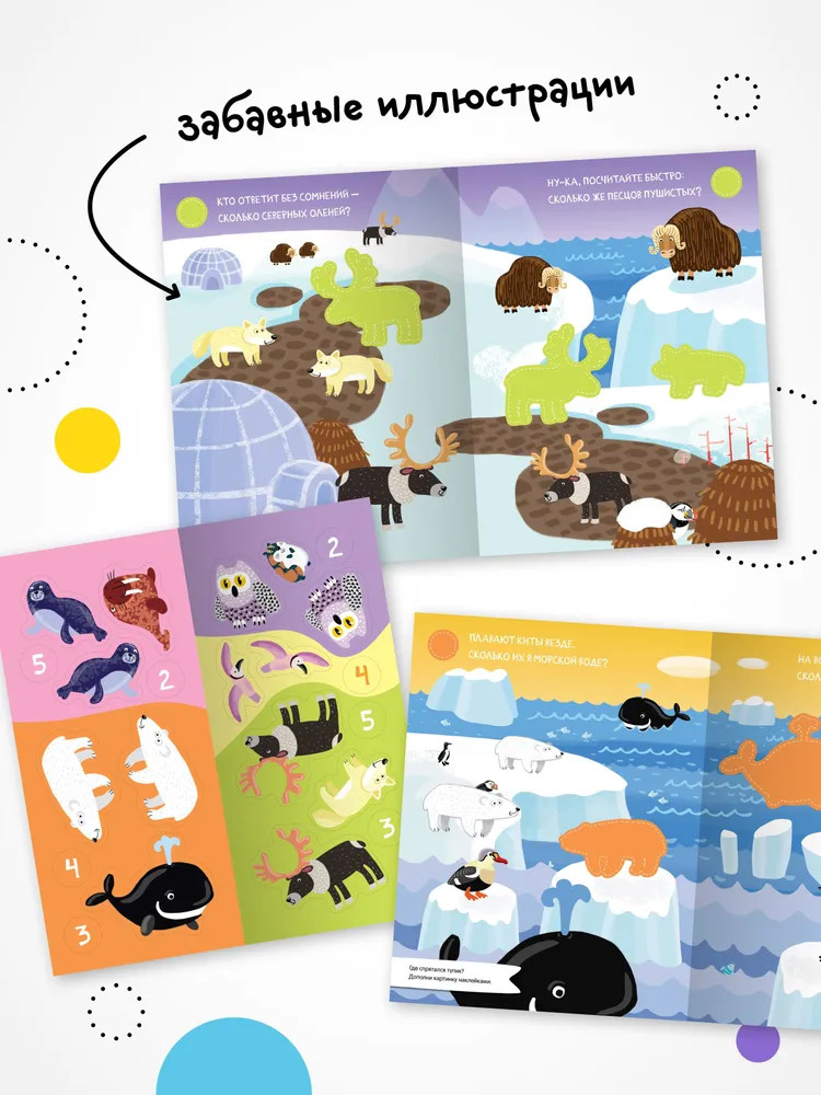 Серия: Найди, посчитай, наклей Все малыши любят стихи и легко усваивают ритмичную информацию. Именно поэтому задания на счет в книге «На севере» серии «Найди, посчитай, наклей» даны в стихотворной форме. Маленький читатель отправится на север, познакомится с арктическими животными и выполнит увлекательные задания: найдет спрятавшегося тупика, посчитает животных на странице и приклеит нужную цифру, дополнит картинку наклейками с забавными зверушками. Такие занятия способствуют развитию речевых способностей, внимания и памяти, мелкой моторики, мышления и логики; расширению кругозора. |
