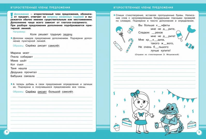 💳 Оплатить за товар можно при получении 🇰🇿 Есть бесплатная доставка по Казахстану от 1 дня 🎁 Копите бонусы с каждой покупки Серия: Занятия для начальной школы Эта книга адресована учащимся четвёртого класса. Она соответствует учебной программе и направлена на закрепление знаний, полученных на уроках русского языка. Книга предназначена для дополнительных занятий русским языком дома и на факультативных занятиях в школе. В пособии представлены задания, развивающие разговорные навыки, расширяющие активный словарь, задания на усвоение правил орфографии и пунктуации русского языка, задания на закрепление навыков звуко-буквенного анализа слов, задания на освоение морфемного состава слов, задания на изучение основ морфологии, а также ряд творческих заданий. |