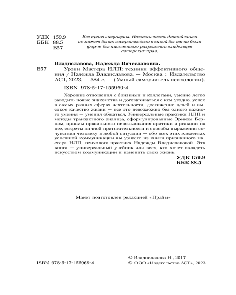 Уроки мастера НЛП. Техники эффективного общенияНадежда Вячеславовна Владиславова +154