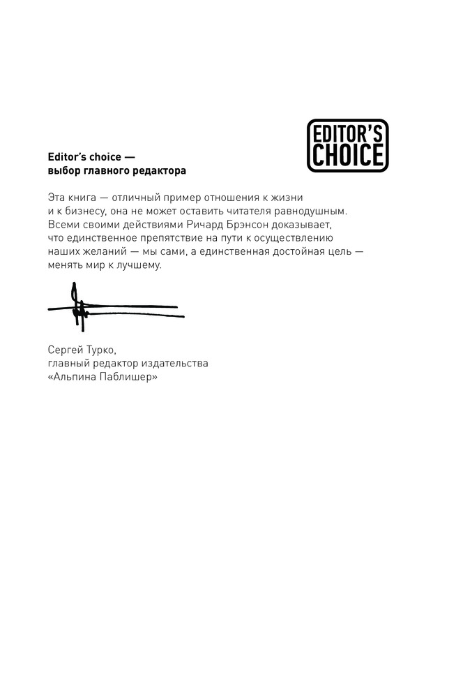 Эта книга невероятная история не менее невероятного человека. Здесь нет деталей как он строил свой бизнес, в книге описаны наиболее значимые моменты его жизни, как личной, так и деловой. Читается на одном дыхании, просто фантастические вызовы, которые автор себе бросал - не укладываются в голове. В общем, однозначно рекомендую к прочтению. Сама книга выполнена качественно, бумага белая, прочная (хотя и обложка в мягком переплёте) Отдельное спасибо flip.kz, уже не раз заказываю книги, доставка работает чётко, книги аккуратно упакованы и целы. Спасибо большое!
