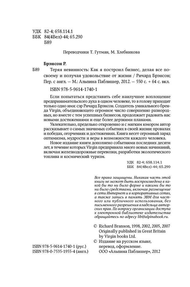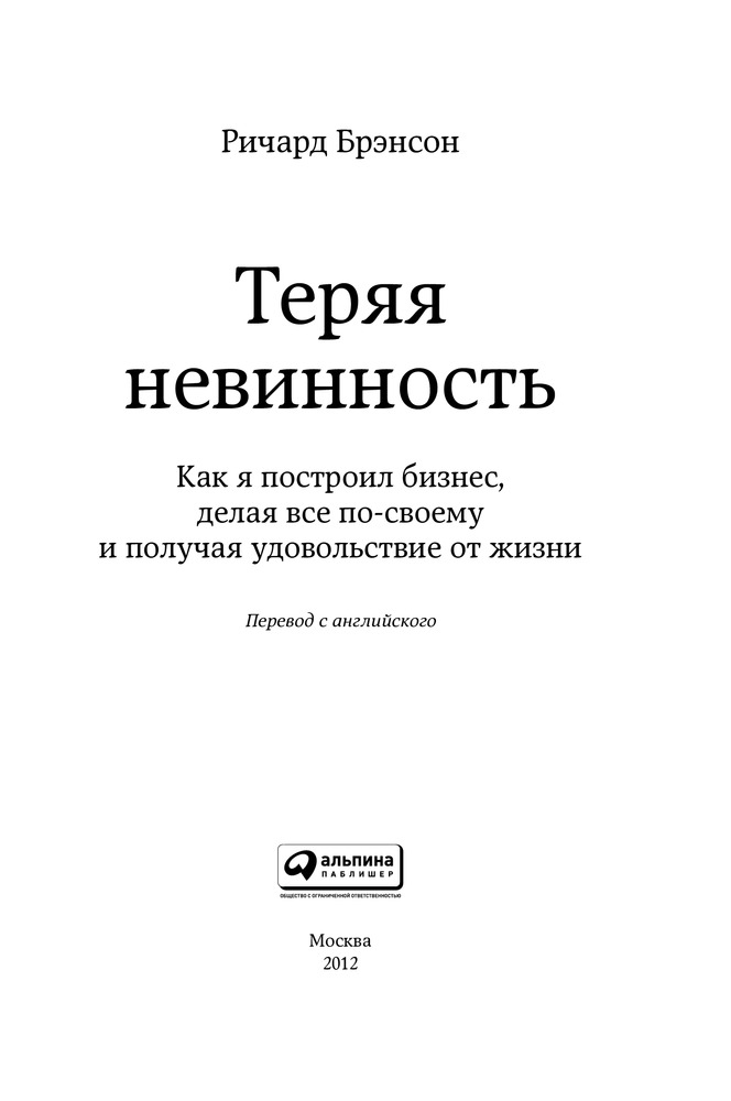 Теряя невинность. Как я построил бизнес, делая все по-своему и получая удовольствие от жизниВ данный момент этот товар отсутствует в продаже. Возможно, у нас найдется аналогичный или похожий товар здесь. Серия: Книги Брэнсона Ричарда О предпринимательском духе, воплощенном в человеке. Создатель уникального бренда Virgin, объединяющего огромное число совершенно разнородных, но вместе с тем успешных бизнесов, продолжает радовать нас новыми достижениями и еще более дерзкими планами. Увлекательно, предельно откровенно и с мягким юмором автор рассказывает о самых значимых событиях в своей жизни: провалах и победах, огорчениях и достижениях. |