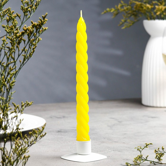 Свеча достаточно высокая, светло-серого оттенка, хорошо помешается в стандартные подсвечники