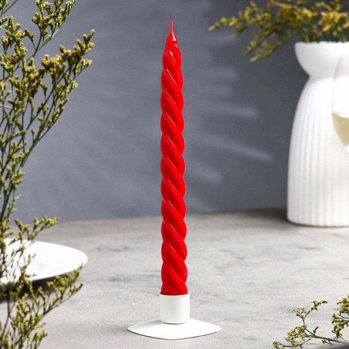 Свеча достаточно высокая, светло-серого оттенка, хорошо помешается в стандартные подсвечники