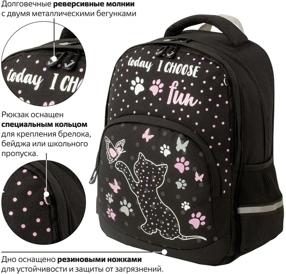 • рюкзак имеет специальное кольцо для крепления брелока, бейджа или школьного пропуска;