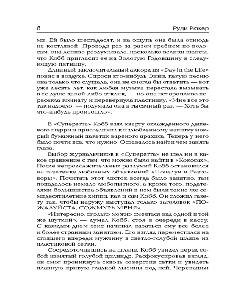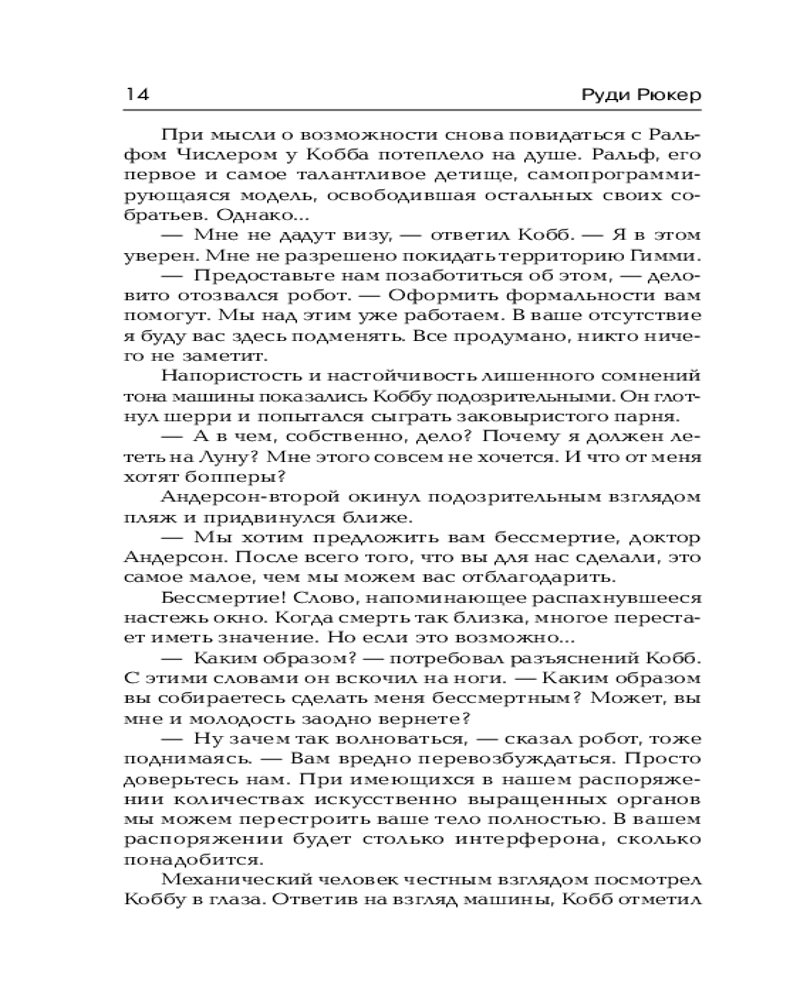 | Руди Рюкер - американский писатель-фантаст. Родился в Луисвилле (штат Кентукки). Выпускник Rutgers University. Лидер контркультурной фантастики и мастер научной беллетристики, склонный к стилистике "чёрного юмора". |
