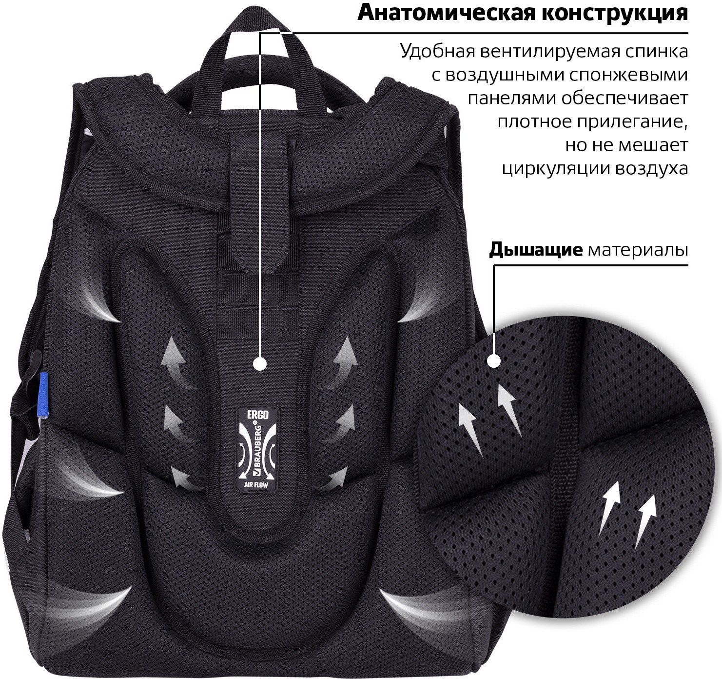 • съёмные нагрудные ремешки помогают равномерно распределять нагрузку на спину;