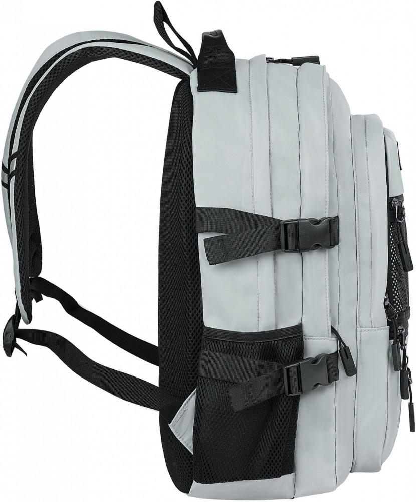 Множество карманов и три больших вместительных отделения позволяют упорядочить и разложить большое количество вещей разных размеров. Благодаря многофункциональности рюкзака можно легко организовать свои вещи, положив ключи, мобильный телефон и другие мелочи в удобные передние и внутренние карманы. Внутри основного отделения находится карман-разделитель. Стильным акцентом является передний карман из эластичной полупрозрачной сетки, в который можно положить различные предметы (брелки, игрушки, картинки, значки) для создания уникального дизайна. В боковых карманах можно разместить бутылочку, термос, зонт и другие необходимые предметы.