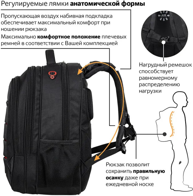 💳 Оплатить за товар можно при получении 🇰🇿 Есть бесплатная доставка по Казахстану от 1 дня 🎁 Копите бонусы с каждой покупки Серия: Functional flagman Солидный рюкзак, выполненный из особо прочного материала, вместит не только ноутбук и документы, но и другие вещи. |
