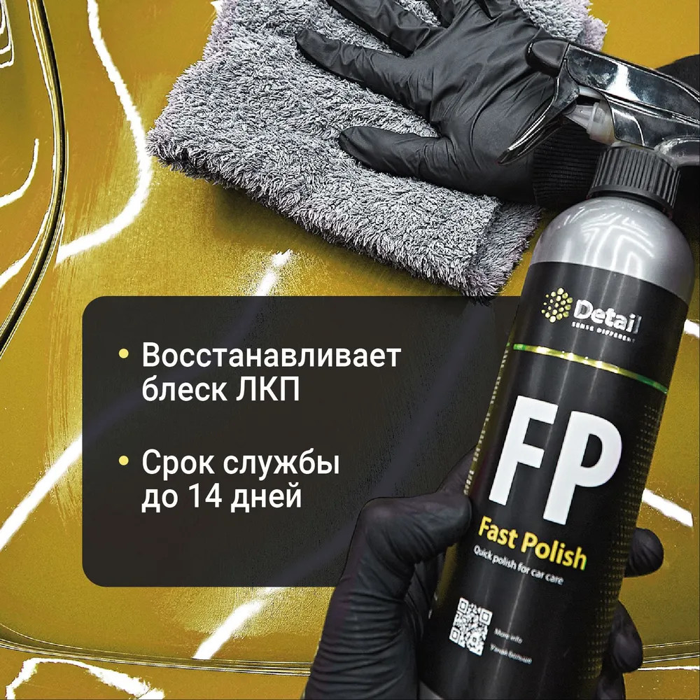 💳 Оплатить за товар можно при получении 🇰🇿 Есть бесплатная доставка по Казахстану от 1 дня 🎁 Копите бонусы с каждой покупки Fast Polish (FP) быстро и легко восстанавливает блеск лакокрасочного покрытия и освежает потускневшие детали кузова. Специальные компоненты, входящие в состав средства, защищают поверхность и отталкивают воду, ускоряя процесс высыхания. |