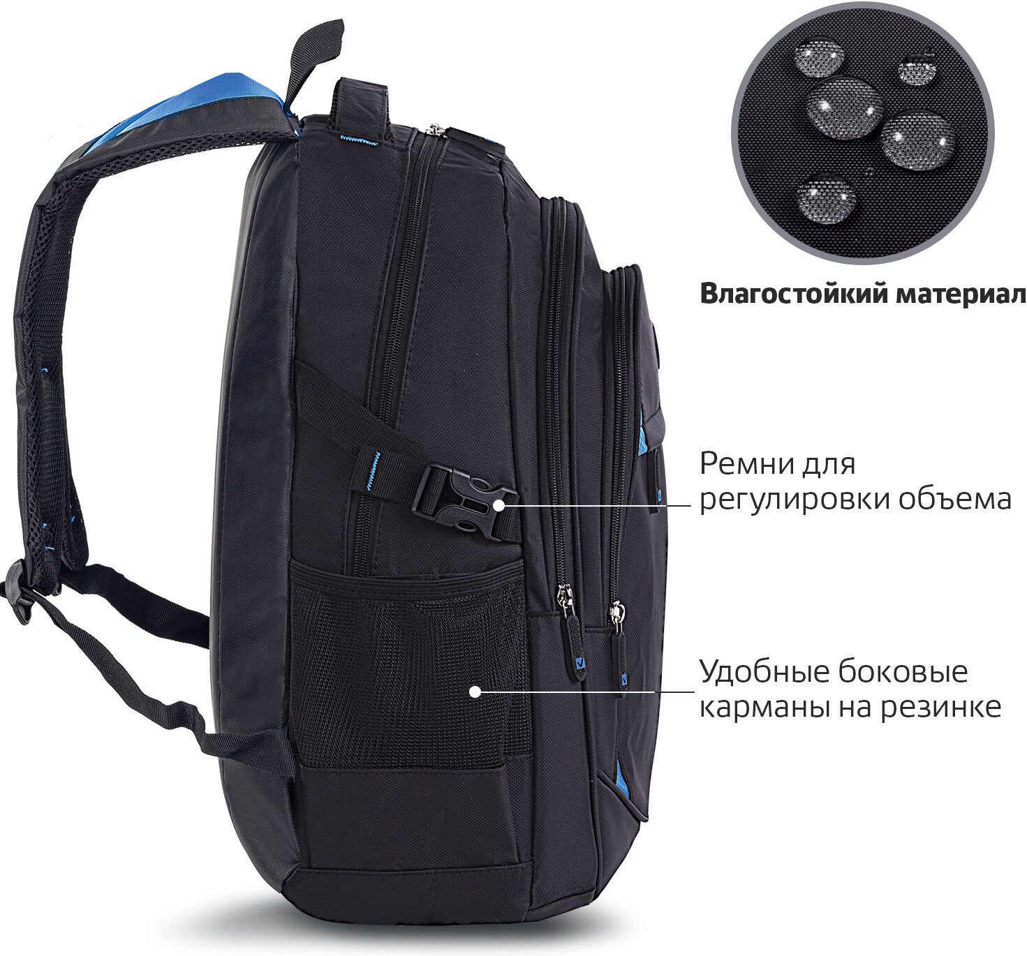 Водонепроницаемый материал, хорошие швы, вместительный. В общем ребенок очень доволен