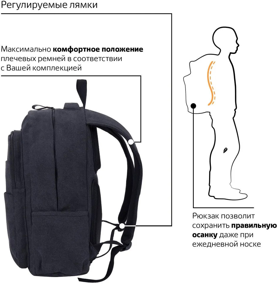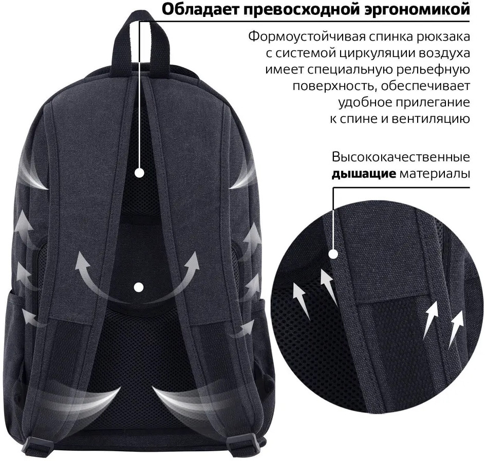 • укрепленная вентилируемая спинка рюкзака с анатомическими вставками обеспечивает удобное прилегание к спине, способствуя равномерному распределению нагрузки, делая эту модель комфортной и безопасной для ежедневного использования;