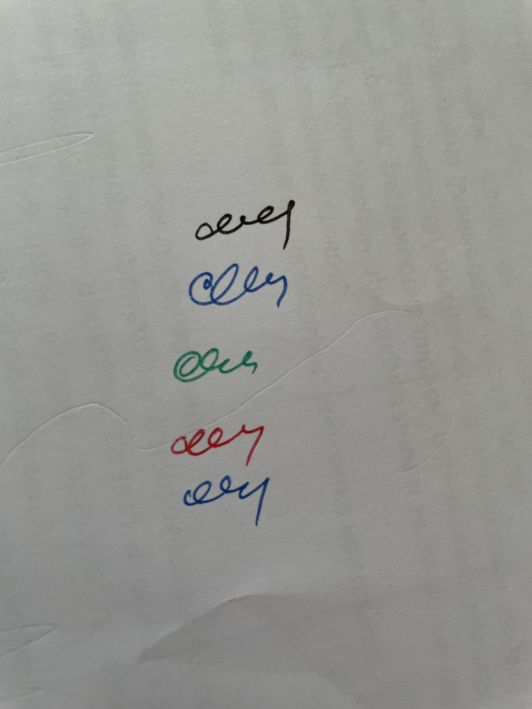Сначала ручки не понравились вообще, было чувство, что не пишешь, а царапаешь бумагу. Потом сделал ещё 2-3 срочные записи и ручки резко понравились. Пишут как фломастер, только не растекается. Цвета чёткие, видные и насыщенные. В общем, остался очень доволен. Рекомендую!