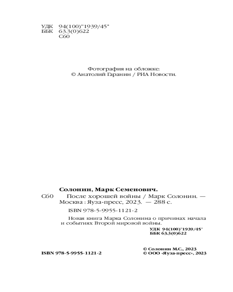 После хорошей войныВ данный момент этот товар отсутствует в продаже. Возможно, у нас найдется аналогичный или похожий товар здесь. Серия: Секретные материалы Великой Отечественной «В июне 1941 года Красная Армия находилась в состоянии скрытого развертывания. На базе управлений и войск внутренних округов формировались армии Резерва ГК, армии эти грузились в эшелоны и с соблюдением строжайших мер секретности выдвигались на рубеж рек Западная Двина и Днепр. Короткими ночными переходами шли на запад так называемые глубинные дивизии, то есть вторые эшелоны войск приграничных округов. Под видом „учебных сборов“ было призвано без малого 800 тысяч резервистов. Механизированные корпуса покидают места постоянной дислокации и выдвигаются в замаскированные в лесах районы сосредоточения...». |