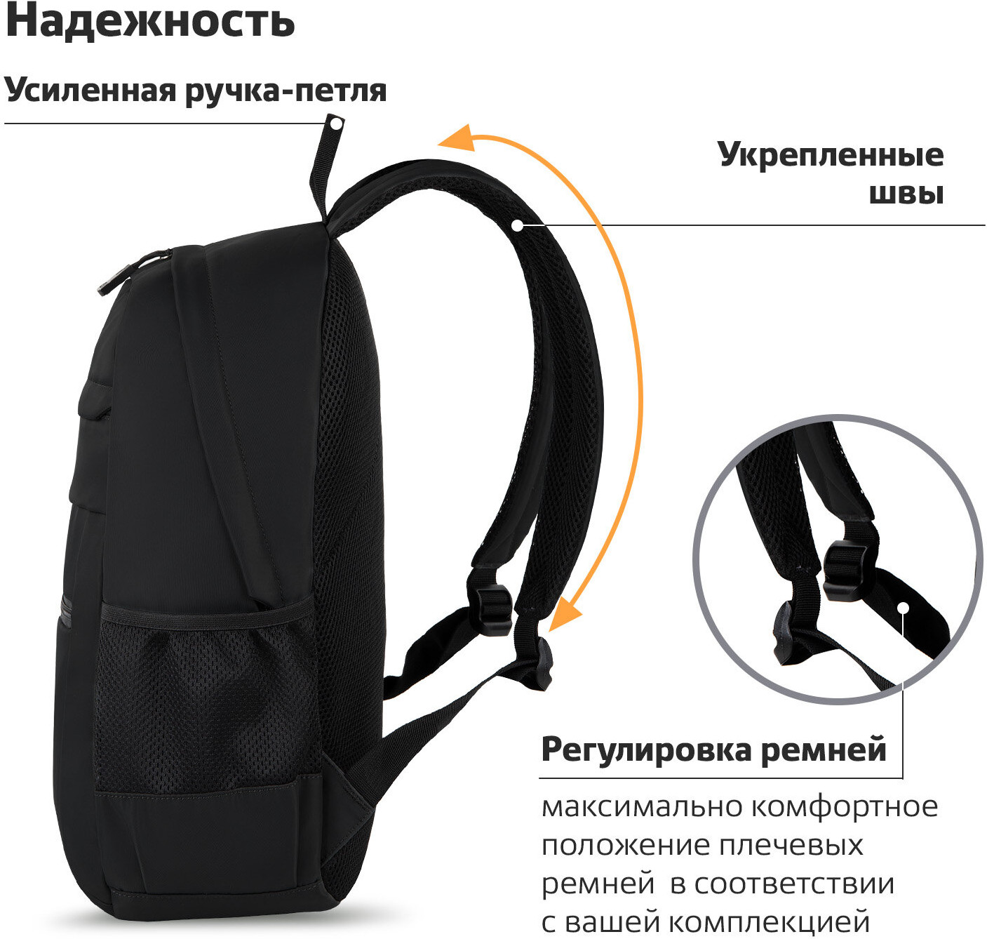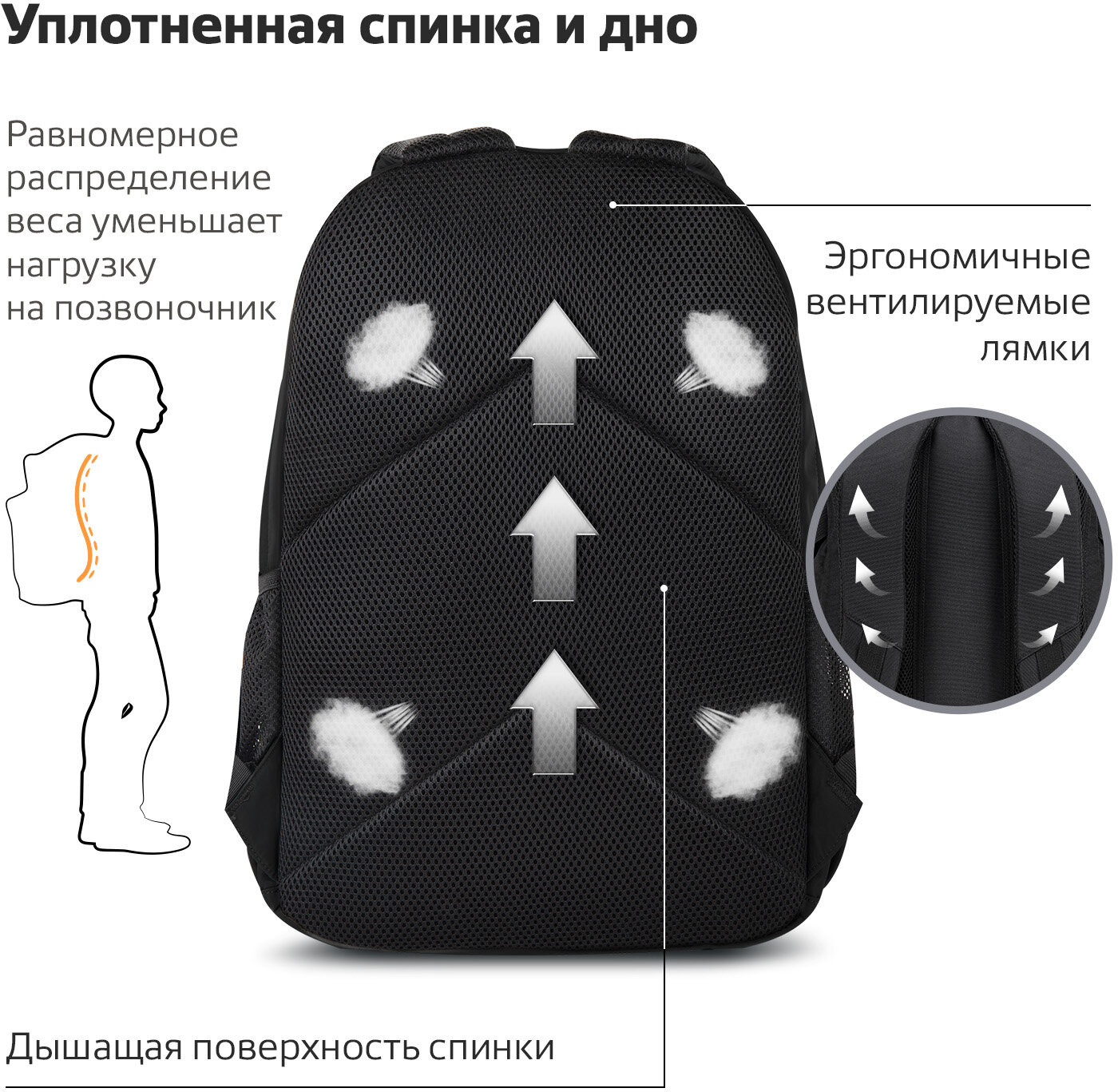 Немаловажная деталь — это наличие специального уплотненного кармана, который можно использовать как для планшета или ноутбука с диагональю экрана до 14″, так и для журналов или тетрадей. Плотная вентилируемая спинка рюкзака обеспечивает удобное прилегание к спине, способствуя равномерному распределению нагрузки, делая эту модель комфортной и безопасной для ежедневного использования. Уплотненные и мягкие регулируемые плечевые ремни, оснащенные пропускающей воздух набивной подкладкой, обеспечивают максимальный комфорт при ношении рюкзака. Удобная регулировка длины производится с помощью пряжек, выполненных из качественного пластика.