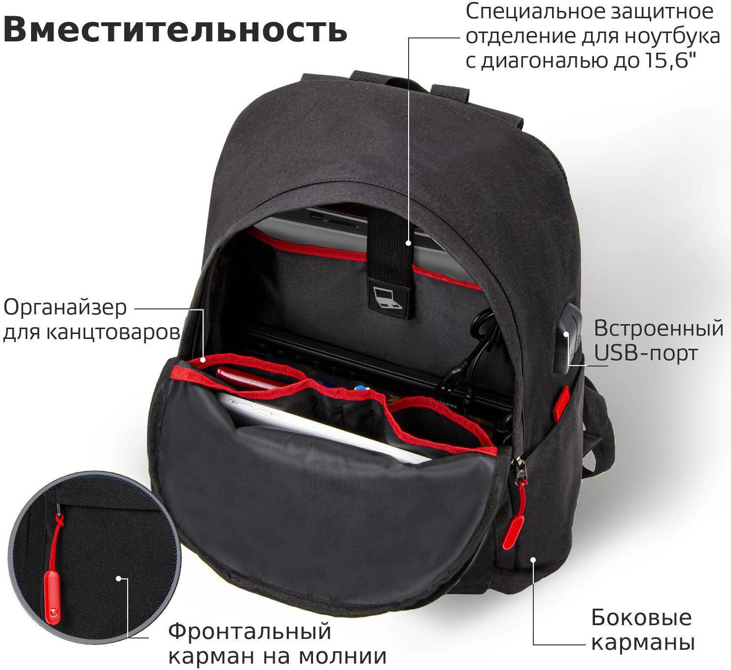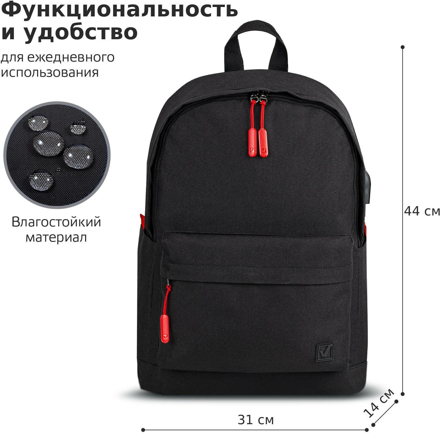 довольно вместительный функциональный рюкзак
