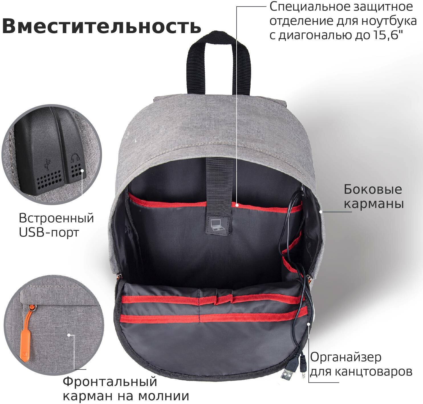 довольно вместительный функциональный рюкзак