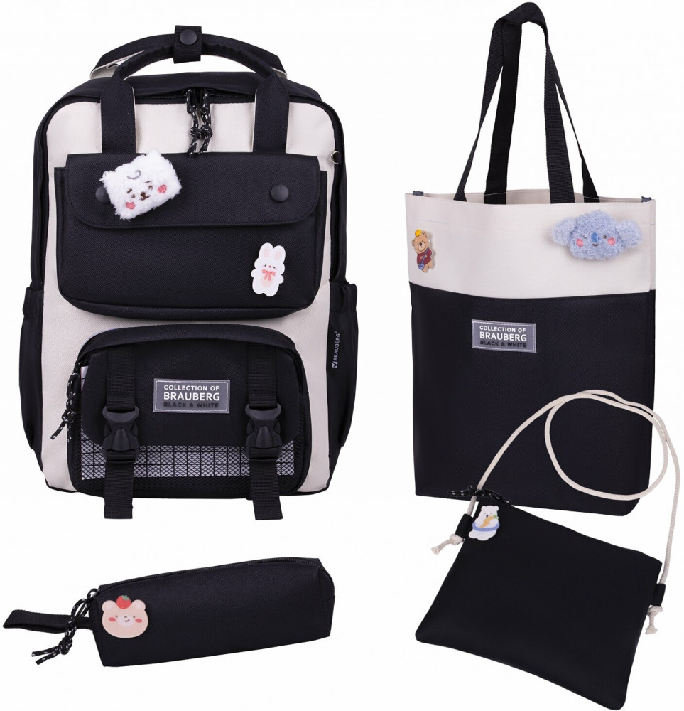 Комплектация: рюкзак, сумка-шоппер, сумочка-косметичка, пенал.