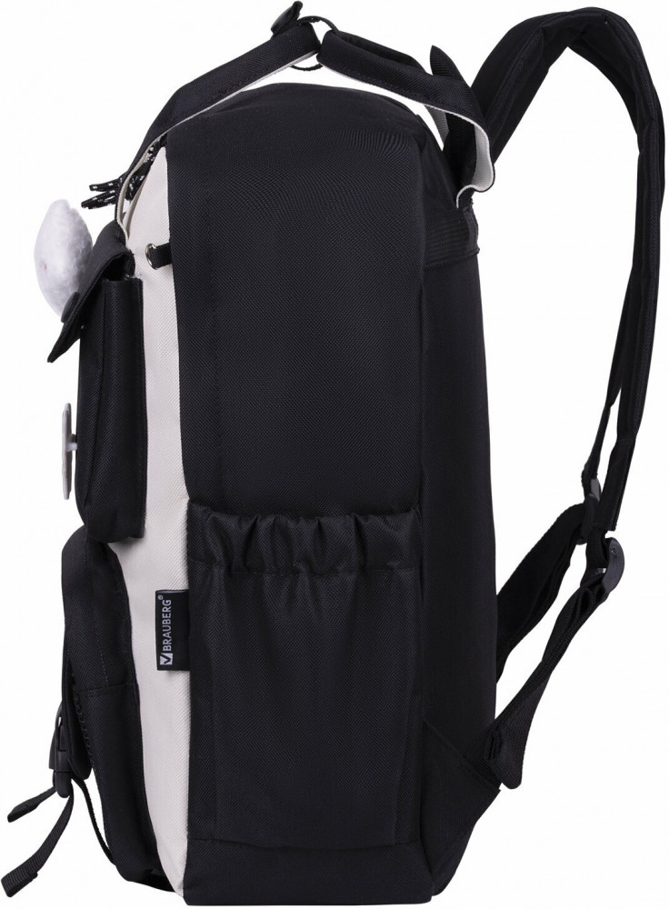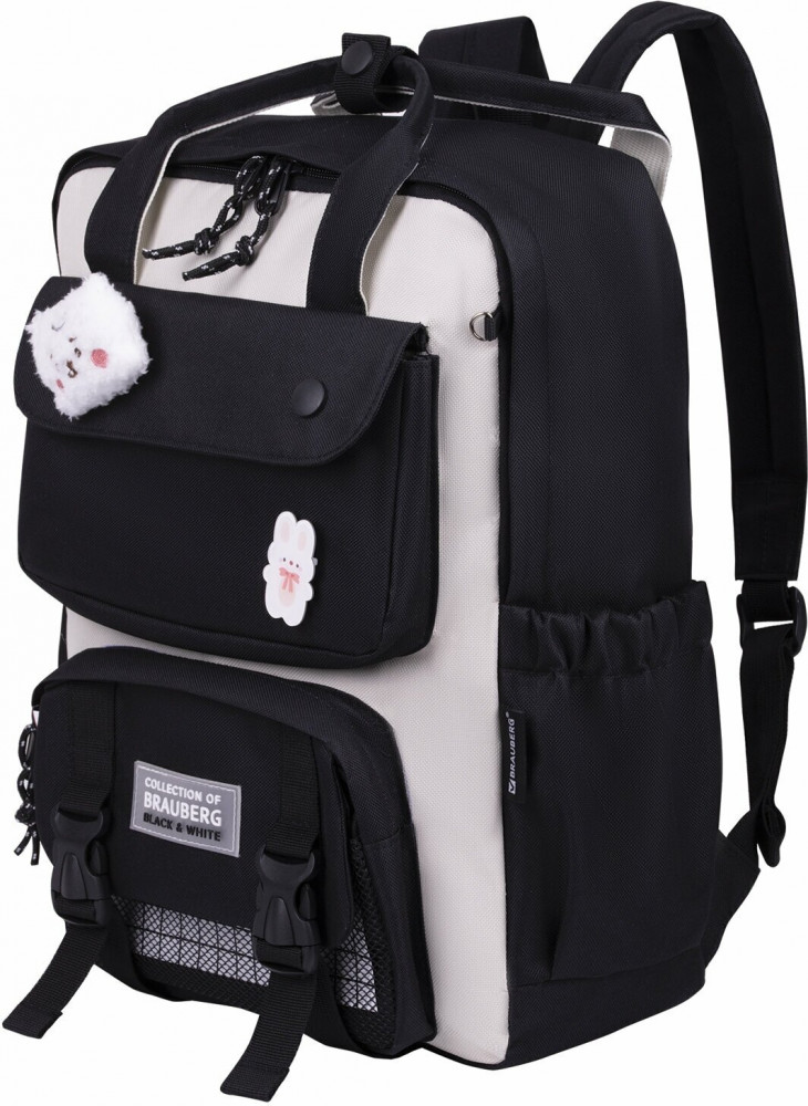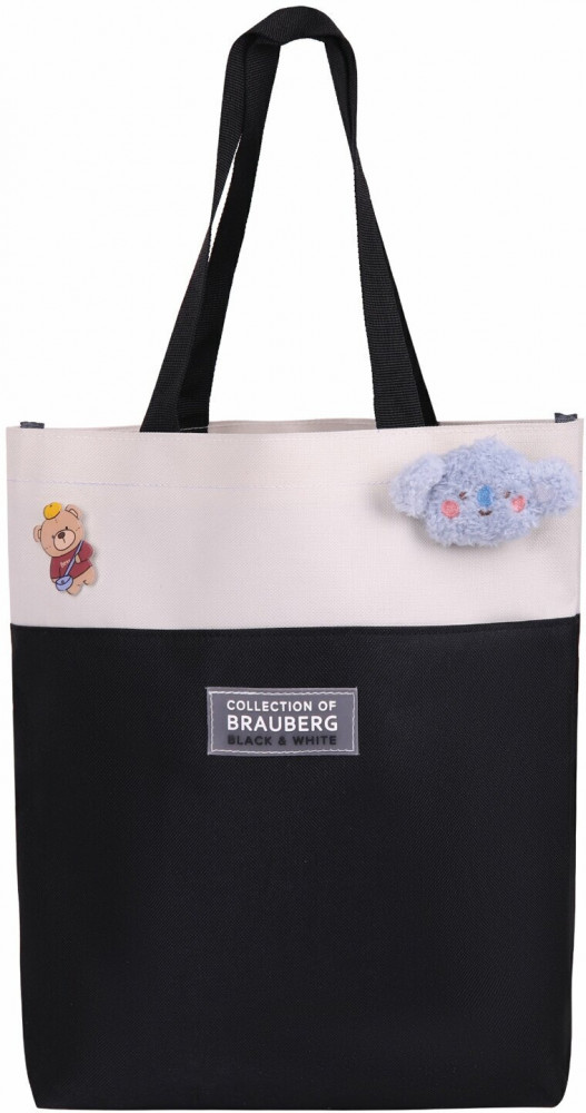 Рюкзак и шоппер выполнены в светло-бежевом и черном цвете. Накладные карманы — это не только удобные элементы, но и популярное дизайнерское решение. Сумка-шоппер на молнии имеет длинные ручки, благодаря которым аксессуар удобно носить на плече и в руках.