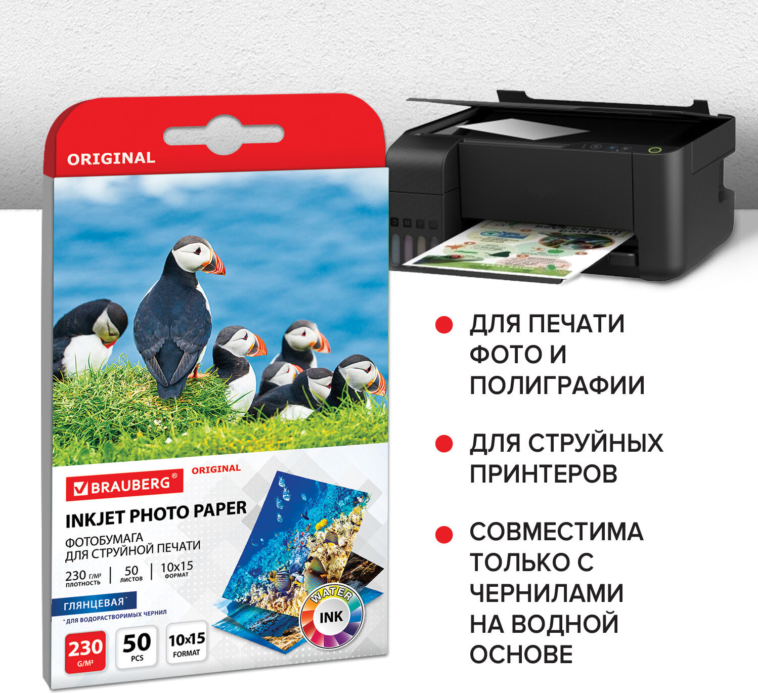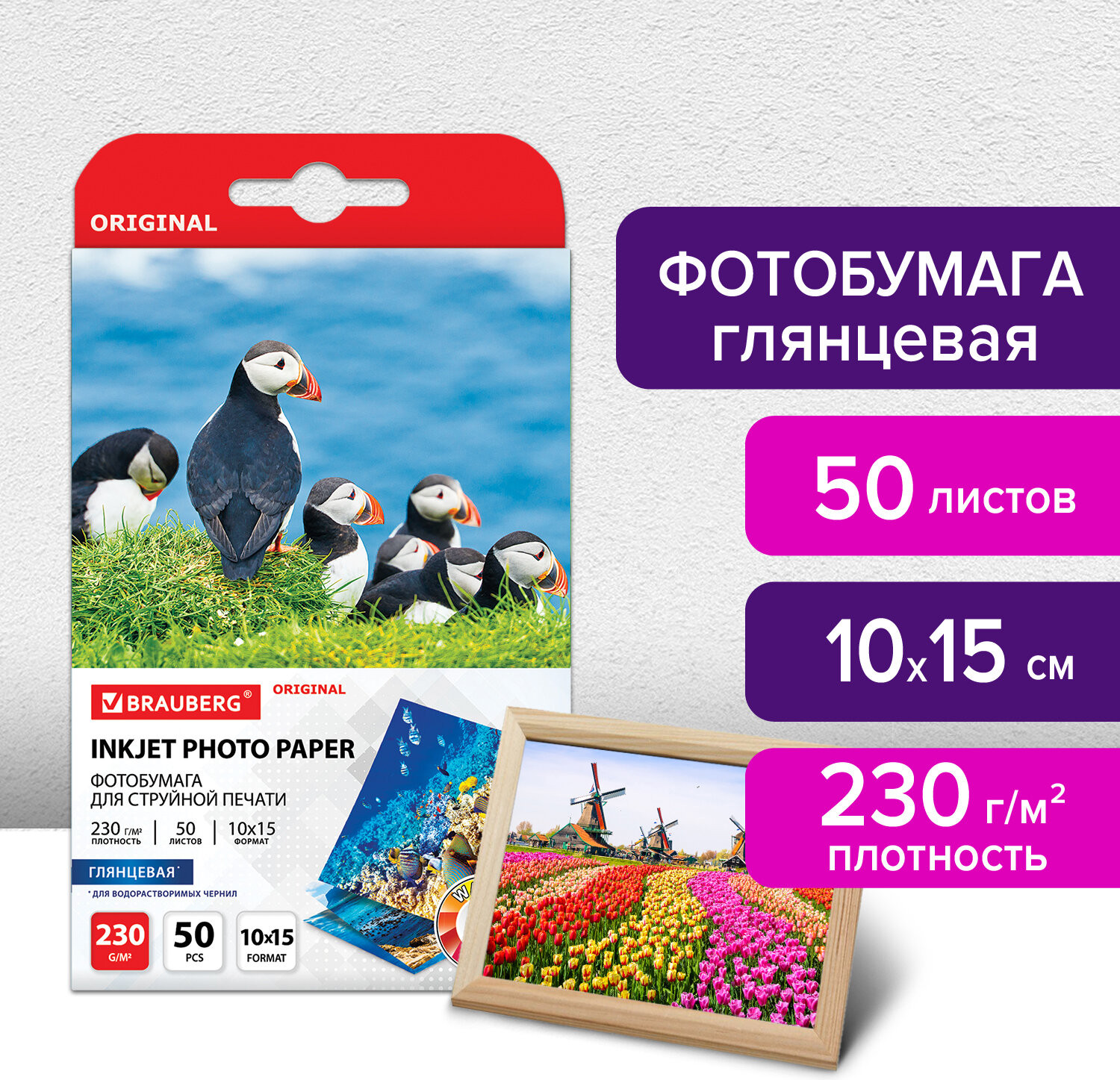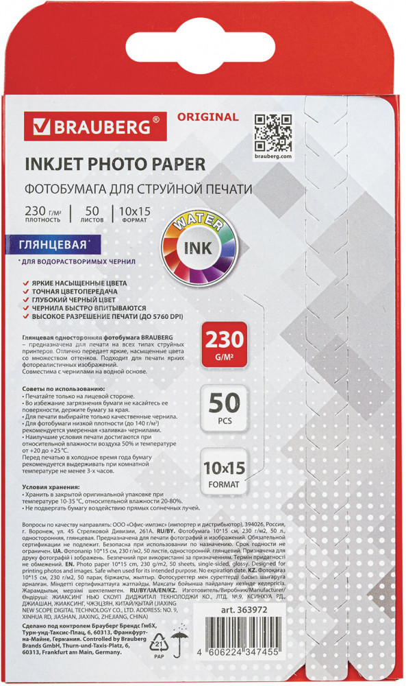💳 Оплатить за товар можно при получении 🇰🇿 Есть бесплатная доставка по Казахстану от 1 дня 🎁 Копите бонусы с каждой покупки Серия: Original Глянцевая односторонняя фотобумага BRAUBERG подходит для всех типов струйных принтеров. Незаменима для печати ярких фотореалистичных изображений. Передает яркие, насыщенные цвета со множеством оттенков. Гладкая поверхность обеспечивает превосходное качество, а особый состав — идеальную цветопередачу. Печать возможна только водорастворимыми чернилами. Поставляется по 50 листов в картонной упаковке с европодвесом. |