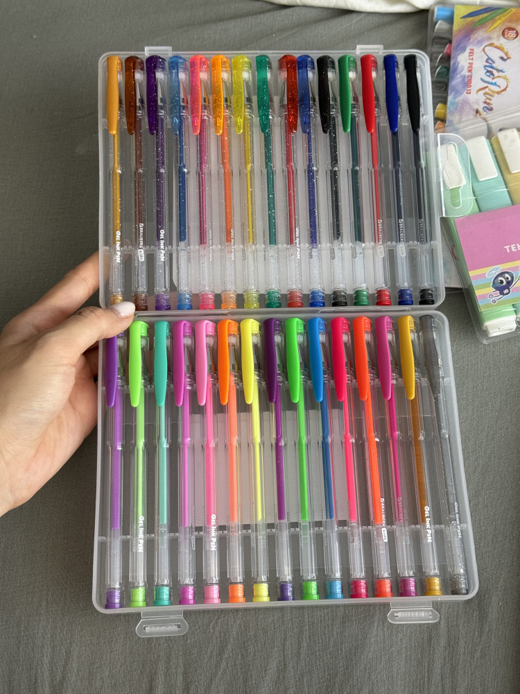 Все вместе ручки пахнут как горсть ягод, по отдельности запах не так заметен. Чернила красивые, на черной бумаге видны только неоновые и пастельные цвета, остальные прозрачные.