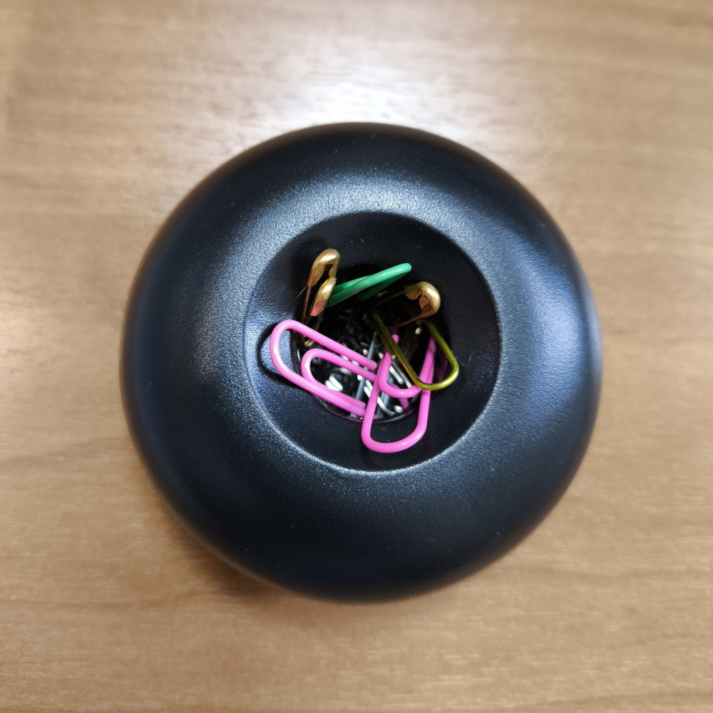 Удобная, миленькая скрепочница. Небольшой минус в наклейке от производителя - на все дно. Долго снимала, но сняла. Можно было наверное и оставить)))