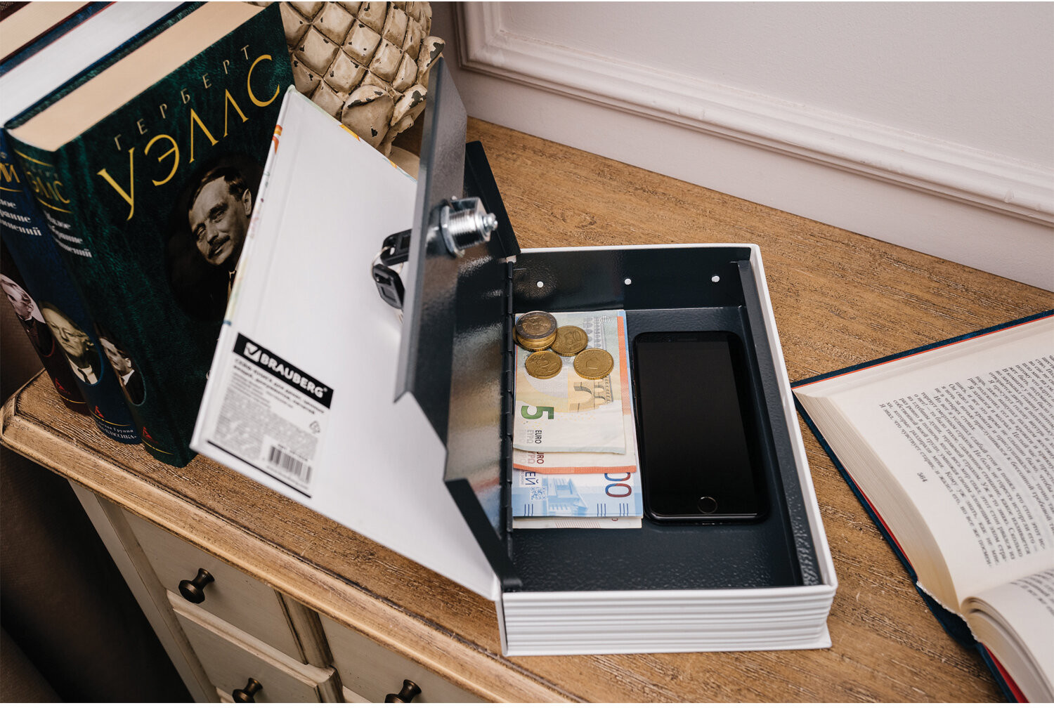 Ящик из прочной стали с ключевым замком. Используется для ограничения доступа посторонних лиц. Незаметен на книжной полке дома и в офисе. Отлично подойдет в качестве подарка или сувенира.