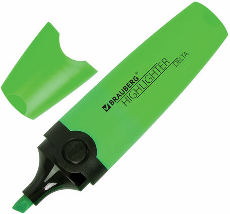 В наборе два неоновых цвета: желтый и зеленый. Овальная форма корпуса диаметром 25 мм. Скошенный наконечник имеет толщину линии письма от 1 до 5 мм, что обеспечивает удобство при работе с текстом, напечатанным мелким шрифтом, или таблицами. Благодаря особой водной основе чернил текстовыделитель не высыхает без колпачка в течение 8 часов. Текстовыделитель обладает экономным расходом чернил, при этом длина линии письма достигает 300 метров. Светоустойчивые чернила быстро впитываются, предотвращая размазывание в процессе использования, и не выцветают даже на открытом солнце. Цвет колпачка и корпуса текстовыделителя соответствует цвету чернил.