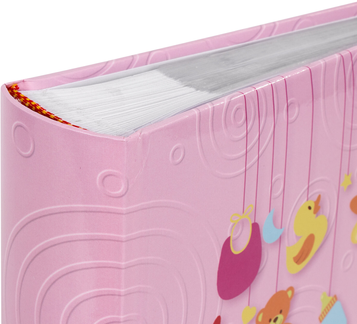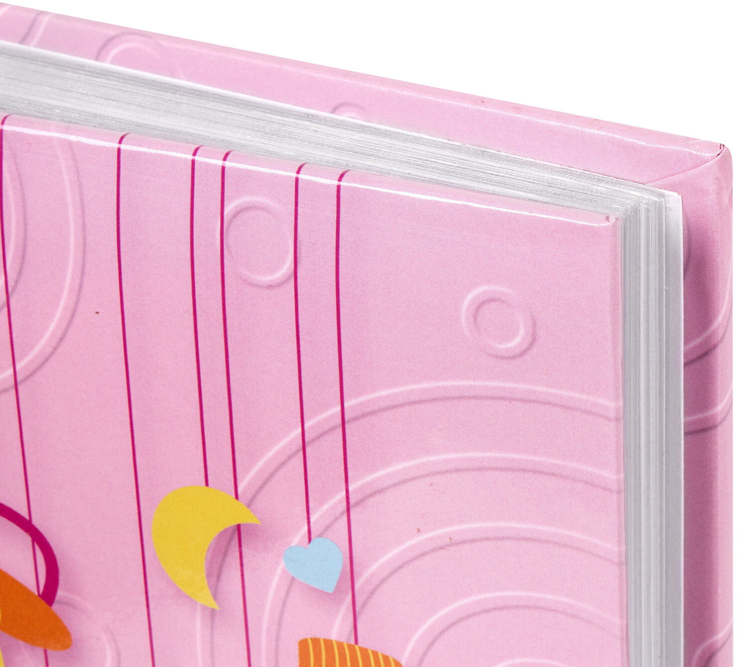 Очень красивый и милый альбом. Бумага плотная и, как мне кажется, хорошо закреплена. Цвет прям розовый (плохое освещение). Прилагаю фото тем, кому пригодится. Я такие искала))