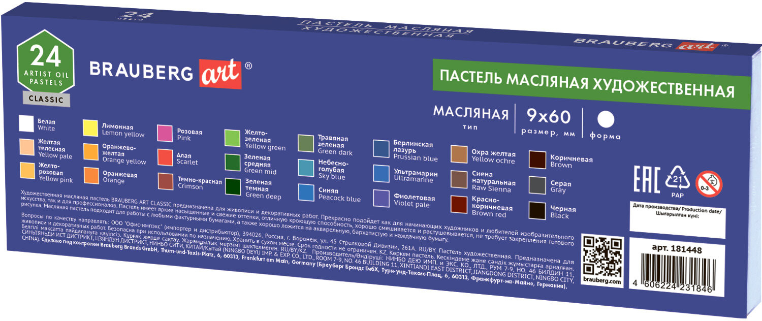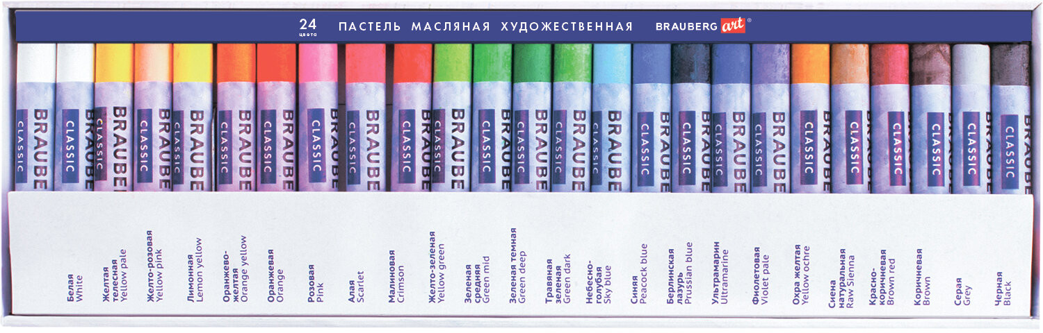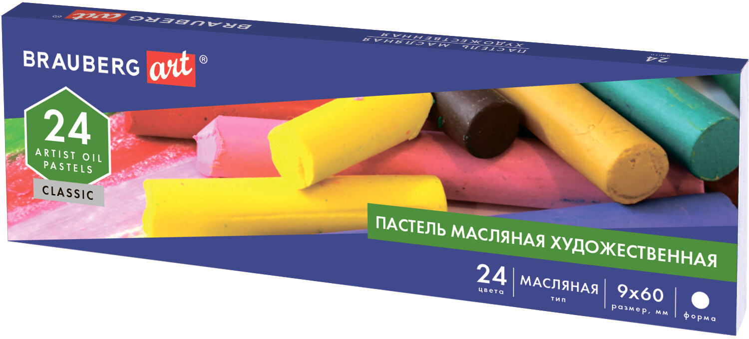 Масляная художественная пастель BRAUBERG ART «Classic» отличается мягкой консистенцией и интенсивной маслянистой цветовой палитрой. Пастель не пачкается, тем самым законченные рисунки труднее смазать и они не требуют дополнительной фиксации.