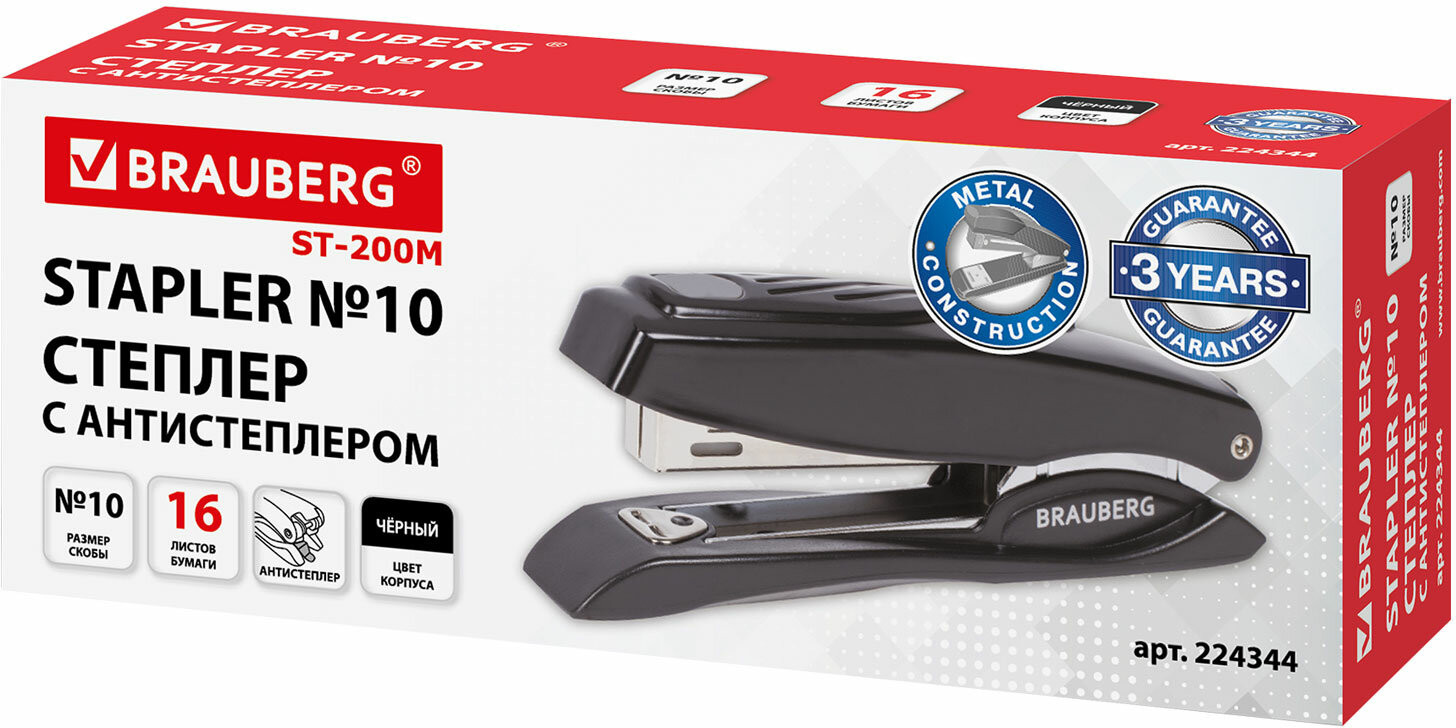 Brauberg Степлер №10В данный момент этот товар отсутствует в продаже. Возможно, у нас найдется аналогичный или похожий товар здесь. Серия: ST-200M Настольный металлический степлер BRAUBERG «ST-200M» № 10 предназначен для надежного и качественного скрепления документов в офисе и дома. |