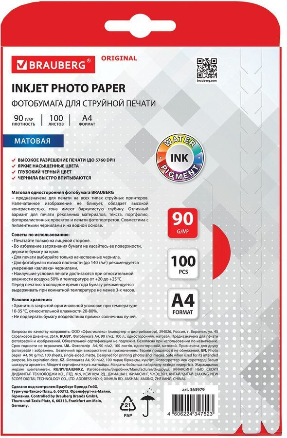 Brauberg Фотобумага для струйной печати-20% +87 качество бумаги беттери бірдей
