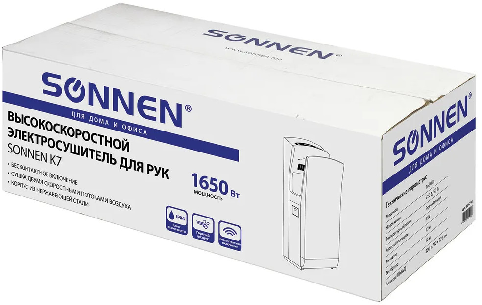 💳 Оплатить за товар можно при получении 🇰🇿 Есть бесплатная доставка по Казахстану от 1 дня 🎁 Копите бонусы с каждой покупки Электросушитель для рук Sonnen К7 — это современное, надежное устройство, которое сочетает в себе все преимущества высокоскоростных электросушителей для рук погружного типа. Подойдет для установки в местах с любой проходимостью. |