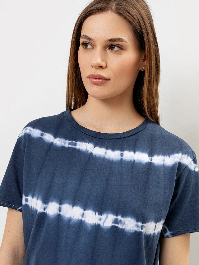 Обычная удлиненная футболка. Ткань приятная на ощупь. Брала носить дома летом, поэтому ... пойдет.