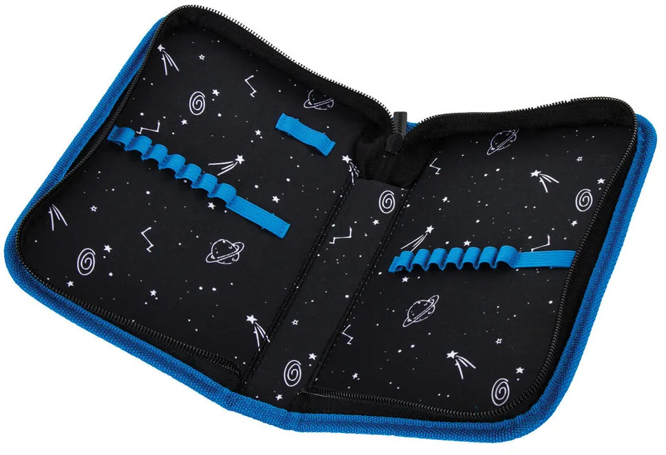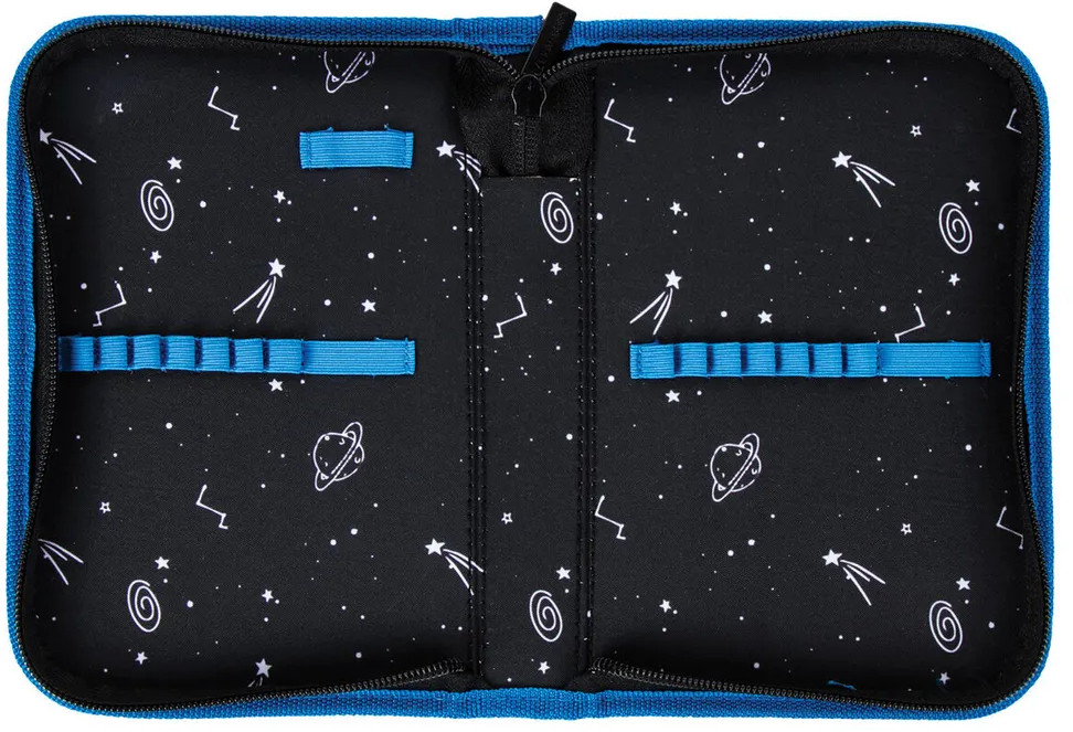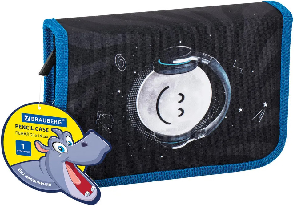 Тканевый пенал «Moon» стандартного размера с одним отделением. Удобная молния с трех сторон с металлическим бегунком, прочные резинки для предметов. Внутри пенала — цветная печать. Вмещает до 18 предметов.
