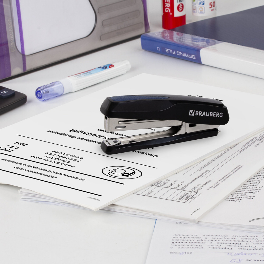 Степлер BRAUBERG «Extra» высокого качества надолго станет незаменимым помощником при работе с документацией.