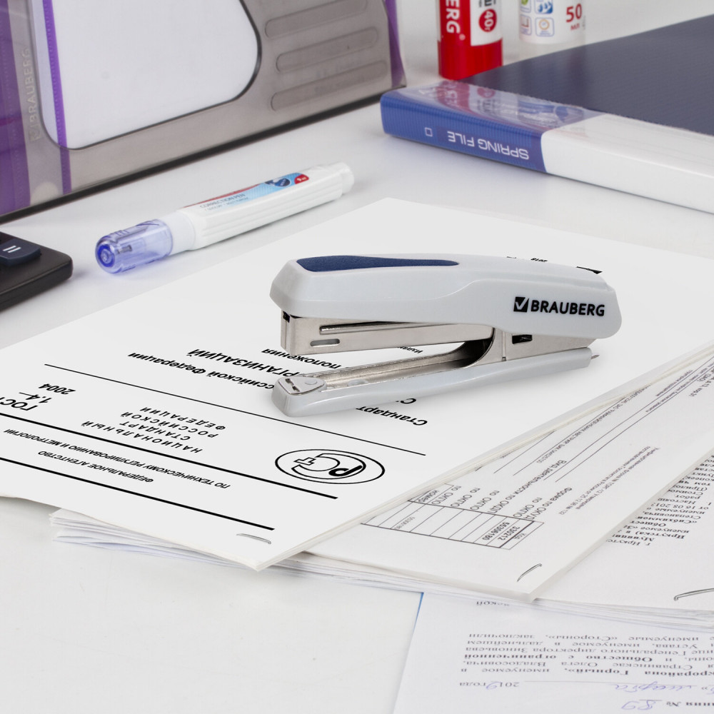 Степлер BRAUBERG «Extra» высокого качества надолго станет незаменимым помощником при работе с документацией.