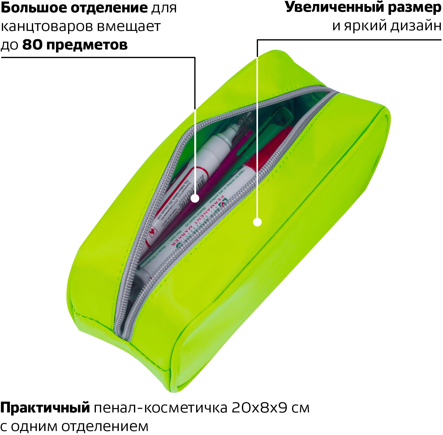 Brauberg Пенал-косметичка «King Size Neon Green»-20% +61 яркий цвет плотная ткань вместительный соответствие картинке