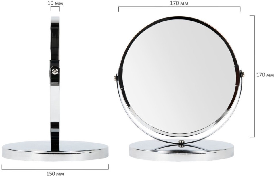 💳 Оплатить за товар можно при получении 🇰🇿 Есть бесплатная доставка по Казахстану от 1 дня 🎁 Копите бонусы с каждой покупки Настольное двустороннее зеркало Brabix станет отличным помощником в уходе за кожей, нанесении макияжа, проведении лечебных процедур для лица. Эффект увеличения позволит тщательно и аккуратно произвести самые сложные манипуляции в макияже. Также удобно для использования во время бритья. Зеркало поворачивается вокруг своей оси, что создает дополнительные удобства при использовании. Оправа выполнена из хромированной стали. Диаметр зеркала составляет 17 см. |