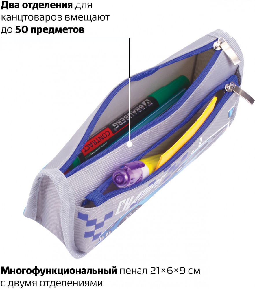 💳 Оплатить за товар можно при получении 🇰🇿 Есть бесплатная доставка по Казахстану от 1 дня 🎁 Копите бонусы с каждой покупки Пенал предназначен для хранения школьных принадлежностей, вмещает до 50 канцелярских предметов стандартного размера. Удобный и вместительный пенал не займет много места в школьном ранце или рюкзаке. Выполнен из прочного полиэстера. Имеет два вместительных отделения. Застегивается на молнию с металлическим бегунком. Поставляется в прозрачном полиэтиленовом пакете с картонным подвесом. |