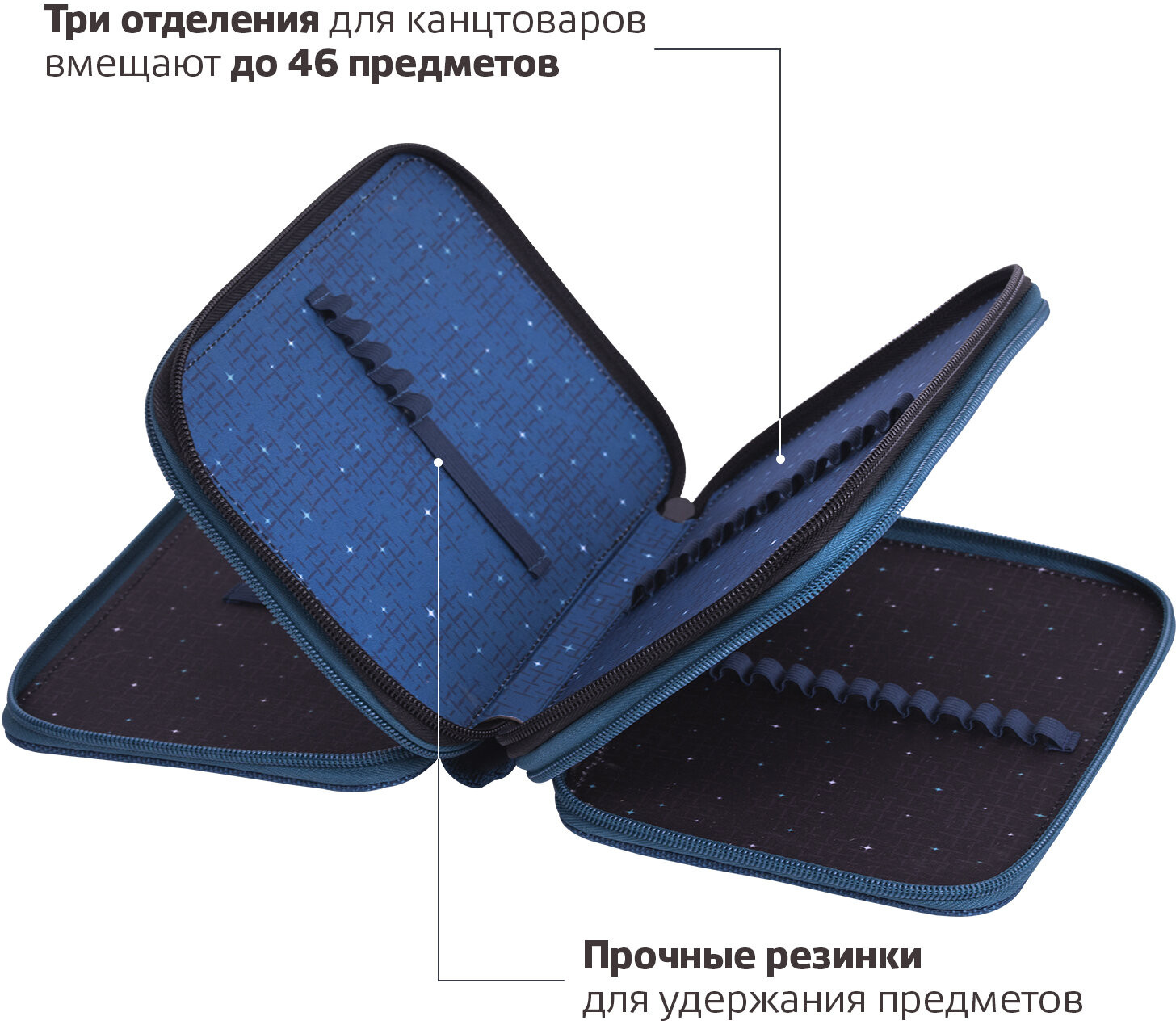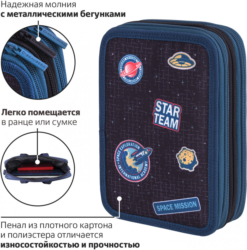 Brauberg Пенал «Space mission»В данный момент этот товар отсутствует в продаже. Возможно, у нас найдется аналогичный или похожий товар здесь. Тканевый пенал «Space mission» стандартного размера с тремя отделениями. Удобная молния с трех сторон с металлическим бегунком, прочные резинки для предметов. Внутри пенала — цветная печать. Вмещает до 46 предметов. Материал снаружи и внутри — полиэстер с цветной печатью, ярким дизайном. Основа пенала — плотный картон. Такая конструкция отличается износостойкостью и прочностью, поможет защитить канцелярские принадлежности от повреждений. |