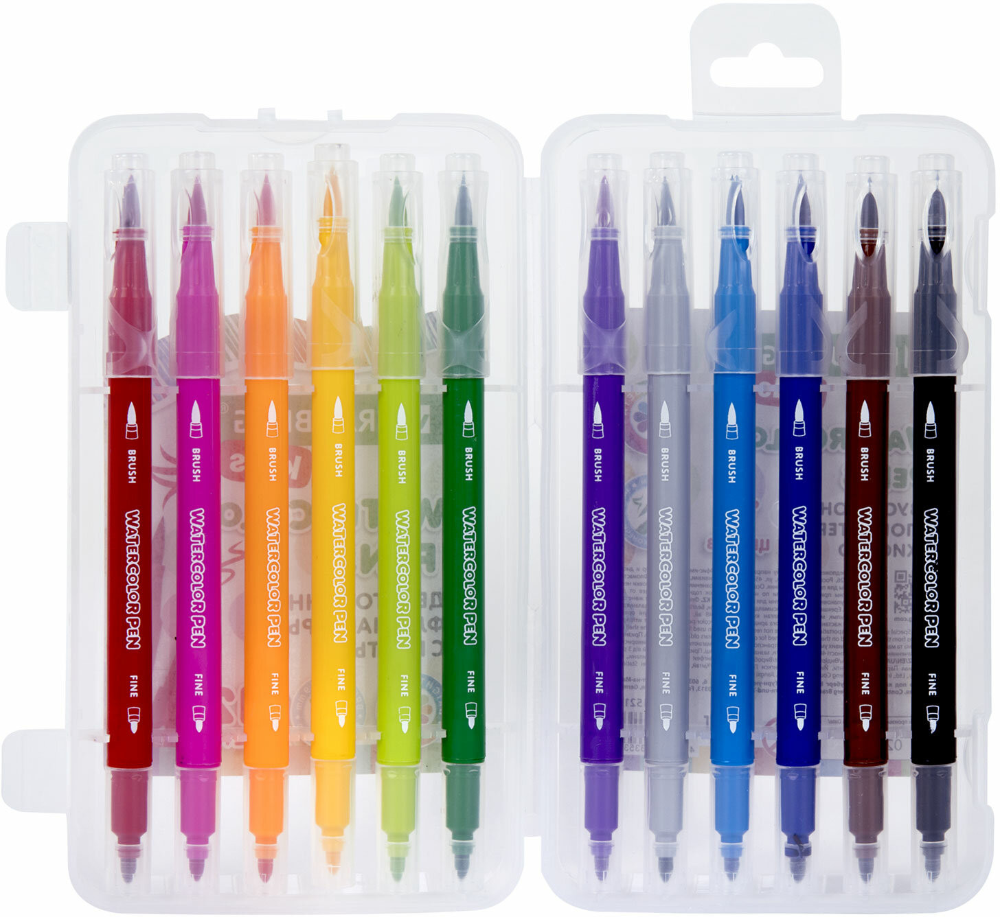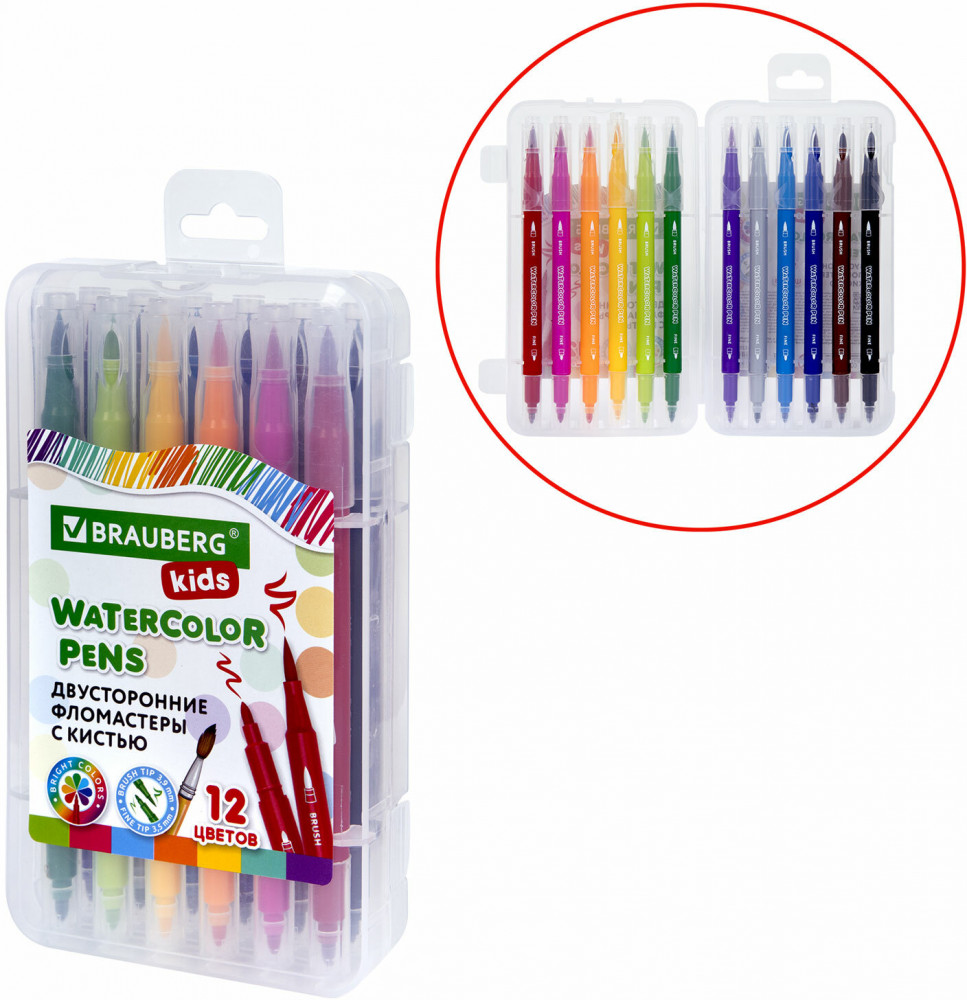 Brauberg Набор фломастеров двусторонних с кистью-20% +57 яркие не просвечивают для хайлайта